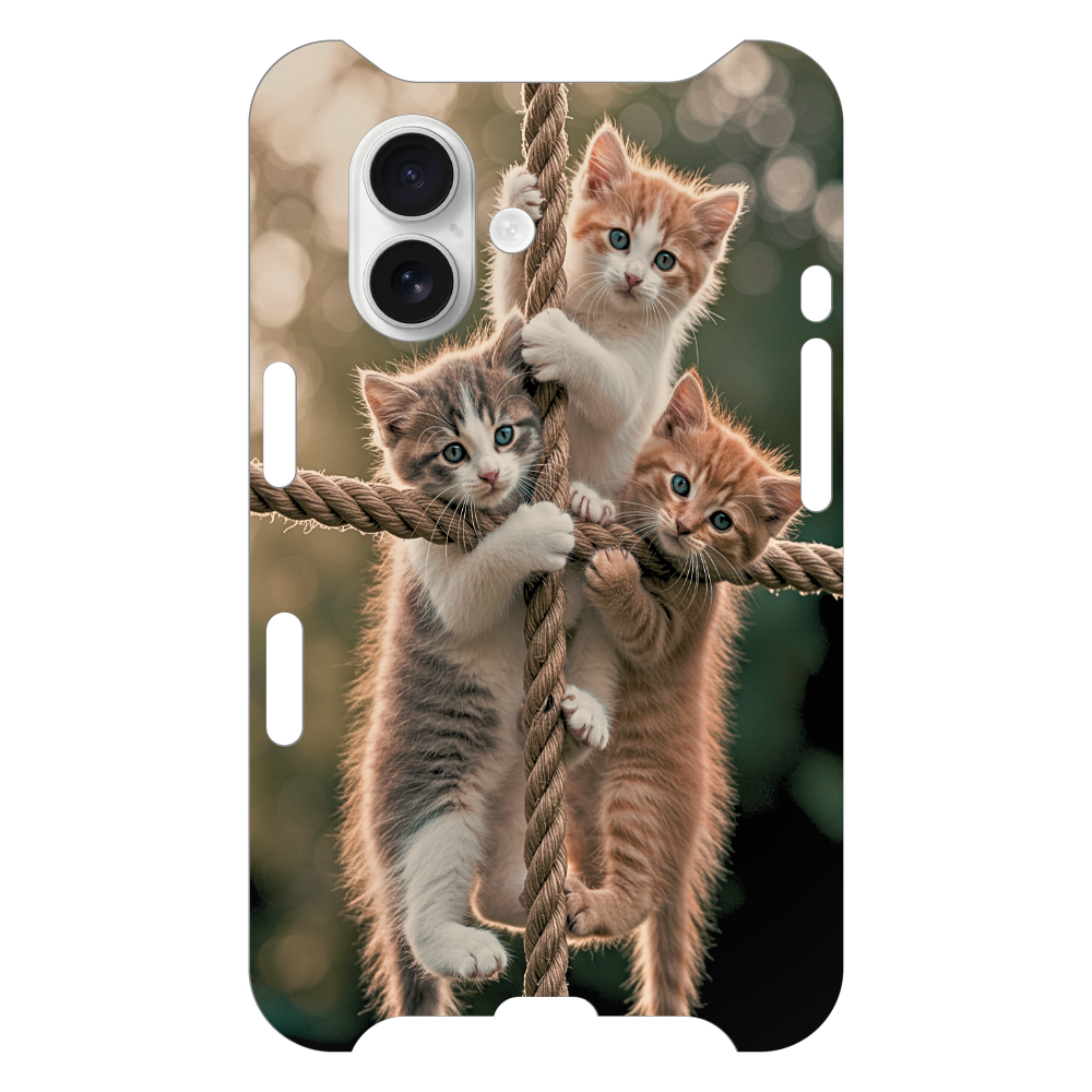 3匹の可愛い子猫たちが、太いロープにしっかりぶら下がり、なぜか誇らしげなドヤ顔!落ちそうで落ちない、危なっかしいのに自信満々!その姿はまさに、可愛さとユーモアの両立アートです。猫好きの心をわしづかみの一品です。