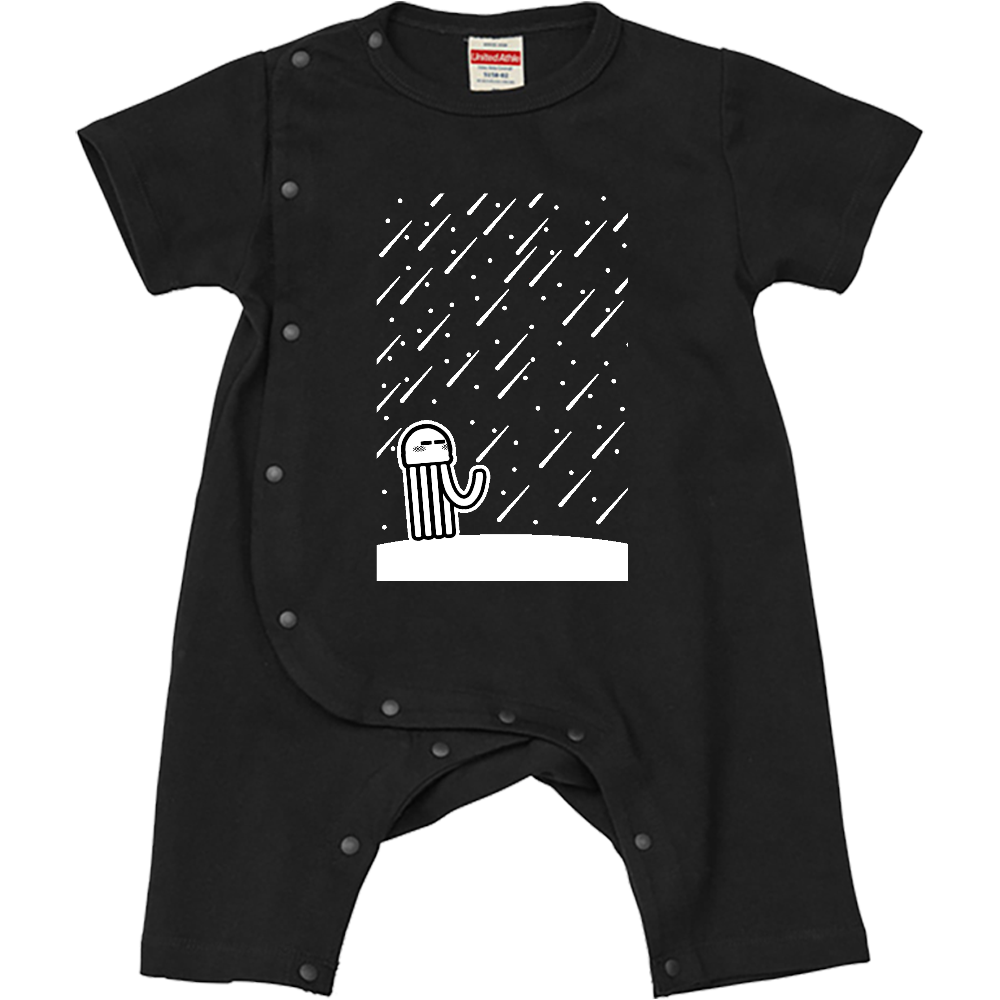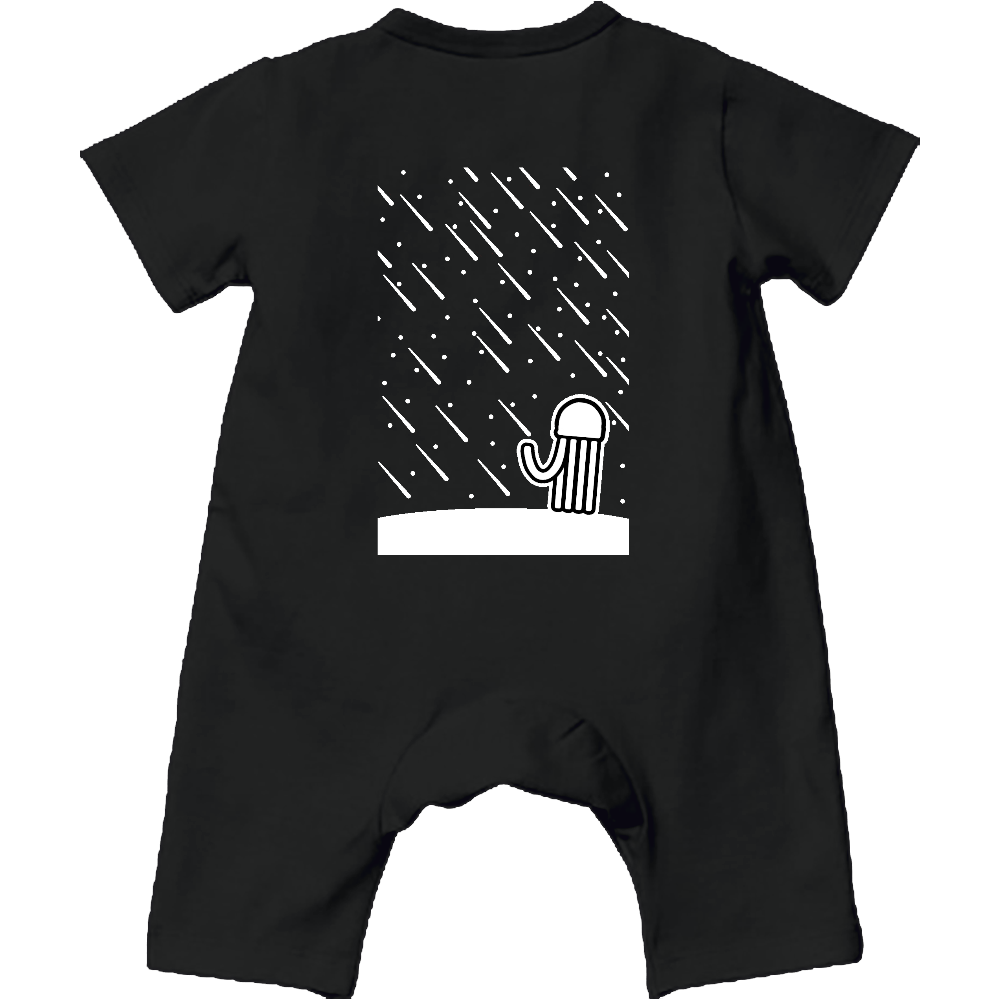 宇宙人が地球征服のため旅立った後、一人母星に残ったクラゲもどきが空(宇宙空間)から降り注ぐ無数の流星を見上げる様子をベビーロンパースにしました。