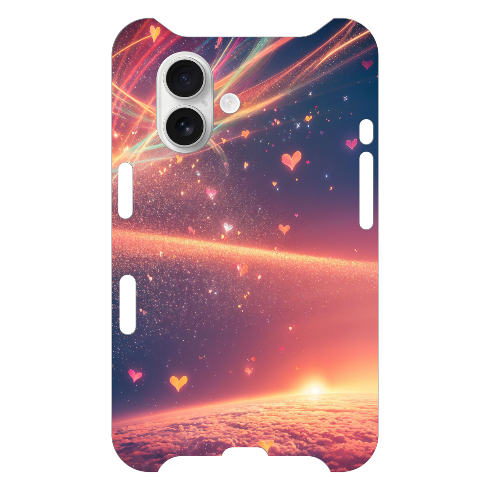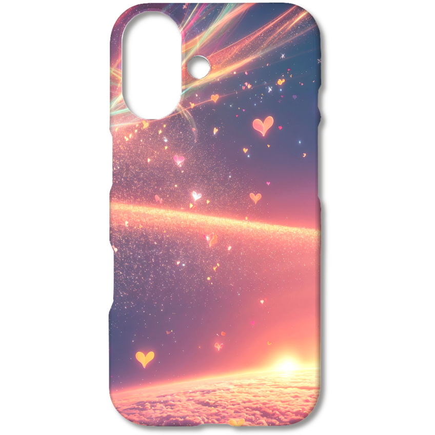 夕日のグラデーションがめっちゃ綺麗で、そこからふわふわと舞い上がるハートが可愛すぎる!