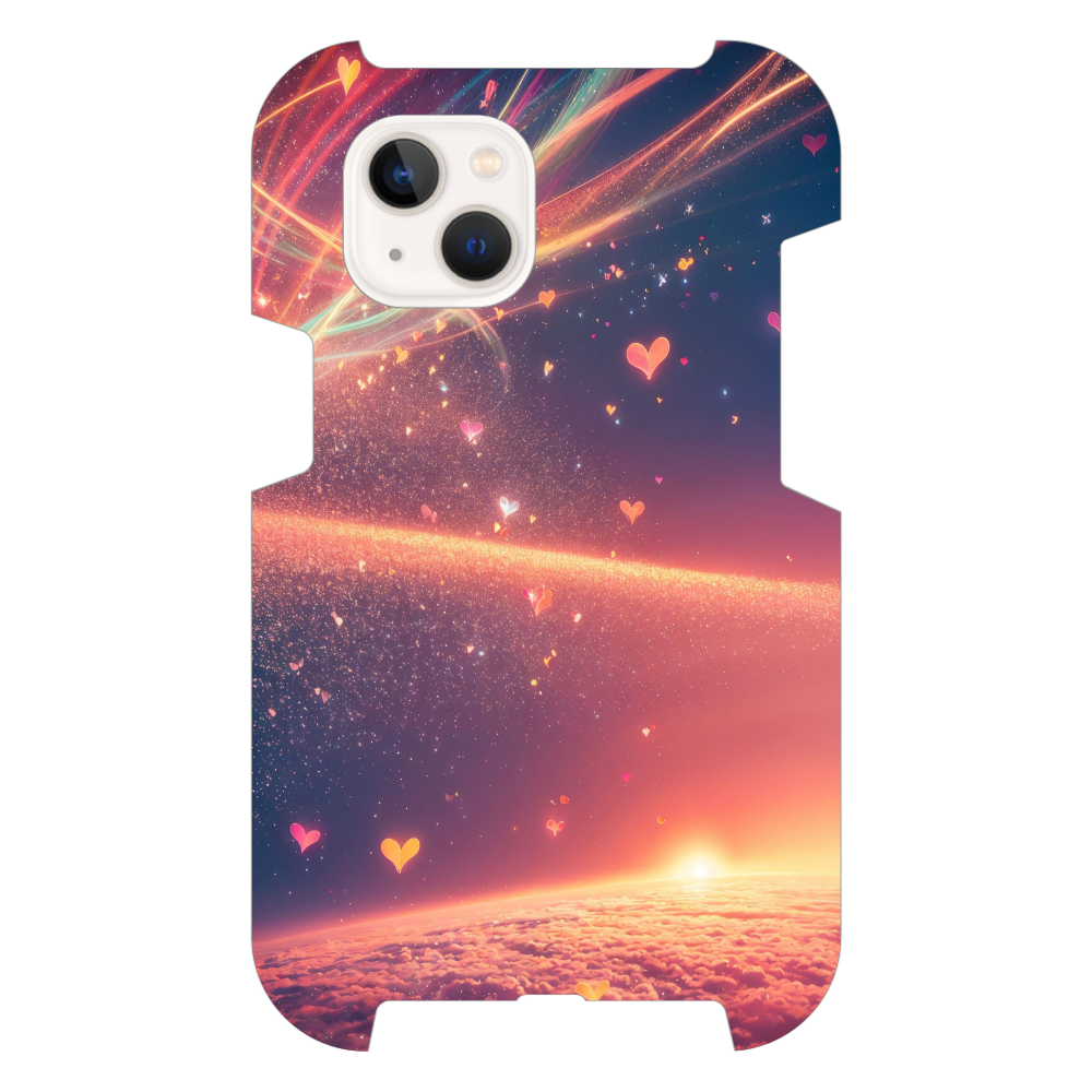 夕日のグラデーションがめっちゃ綺麗で、そこからふわふわと舞い上がるハートが可愛すぎる!