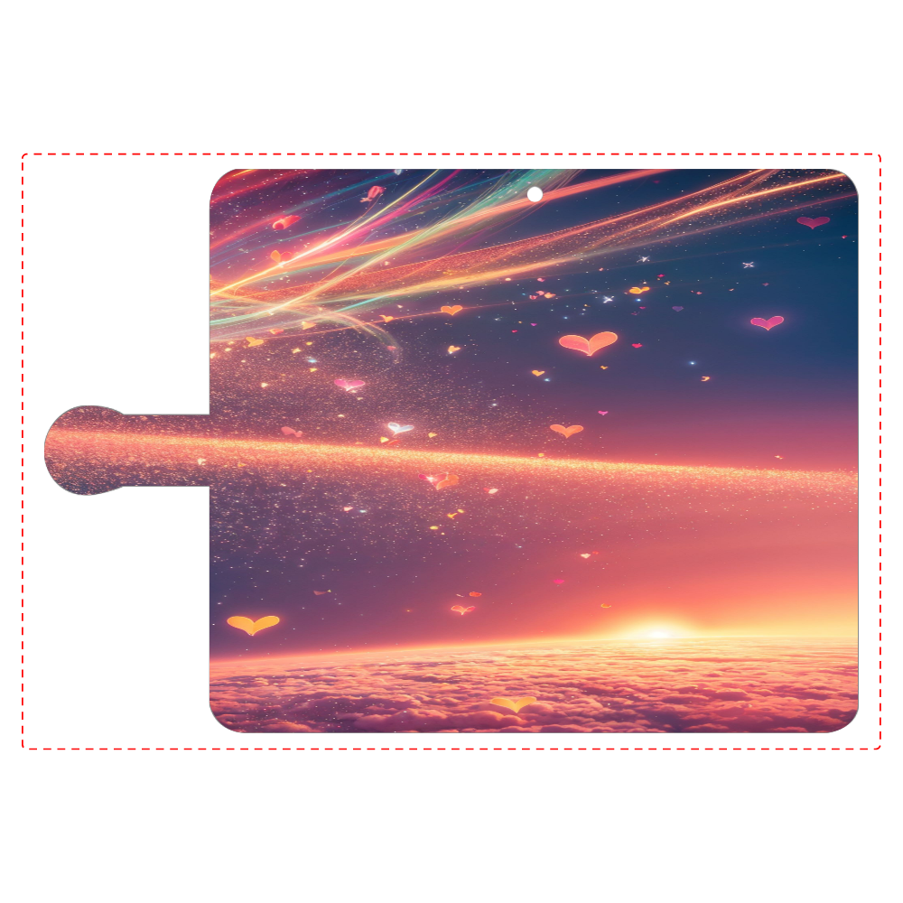 夕日のグラデーションがめっちゃ綺麗で、そこからふわふわと舞い上がるハートが可愛すぎる!