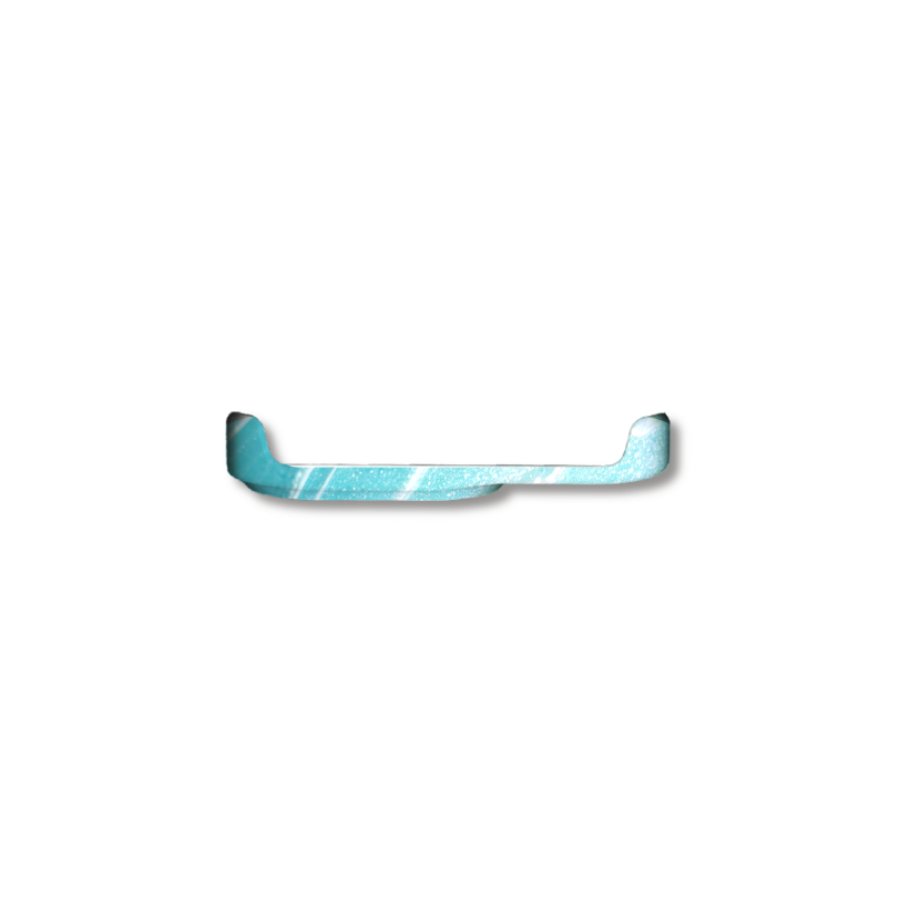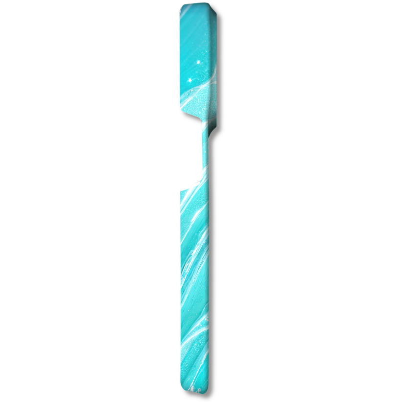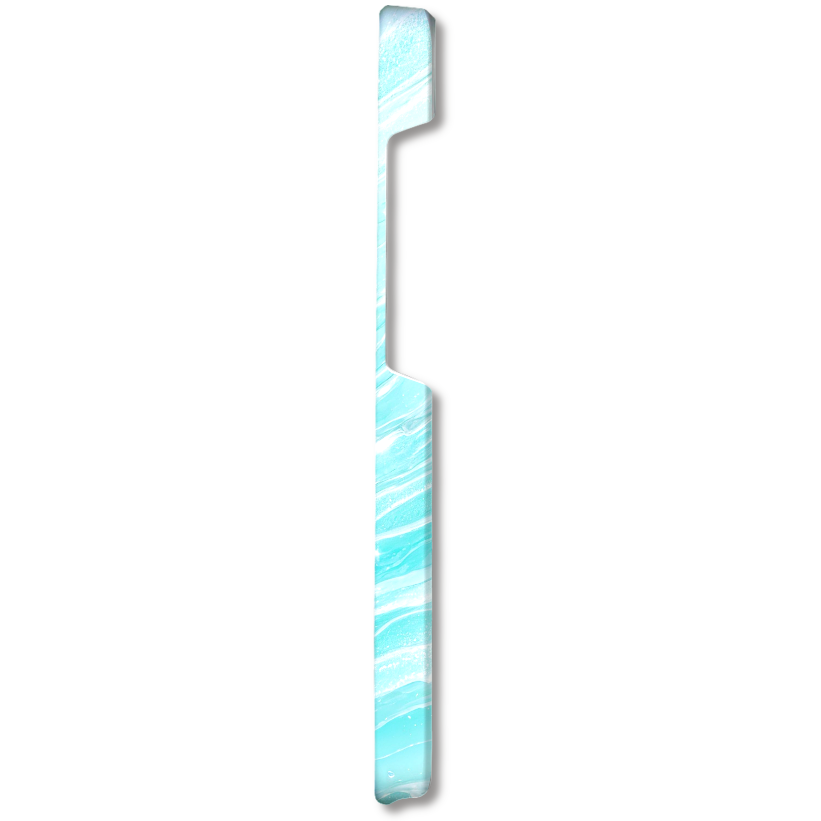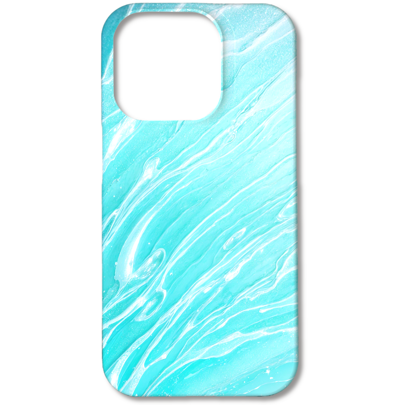 ターコイズブルーとホワイトのマーブル模様が、流れる水の動きを表現しています。