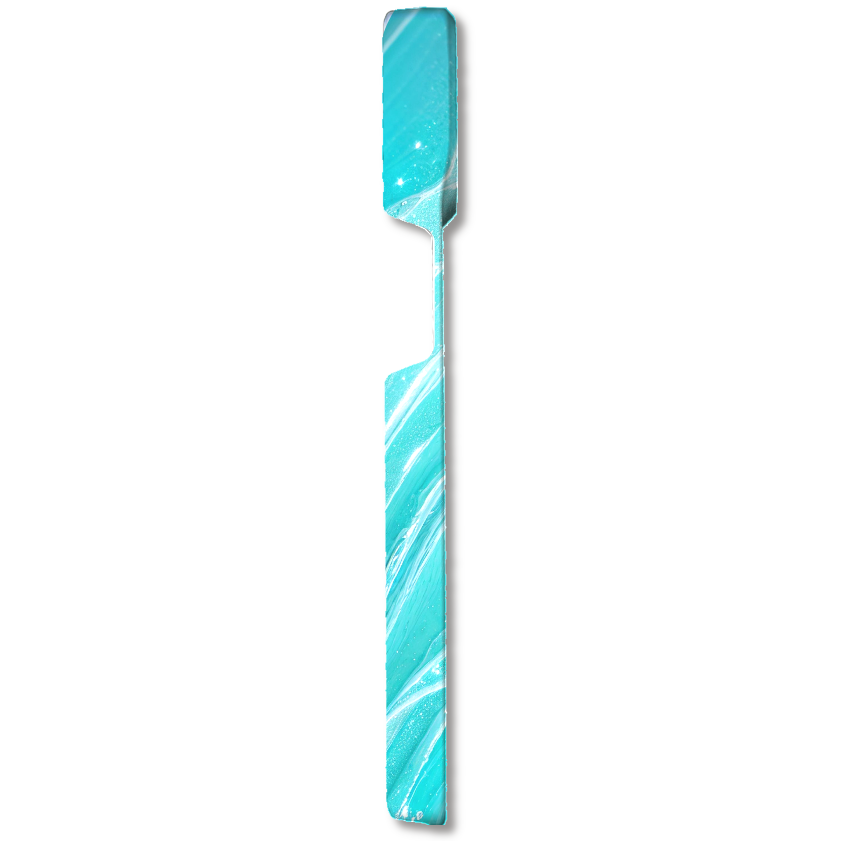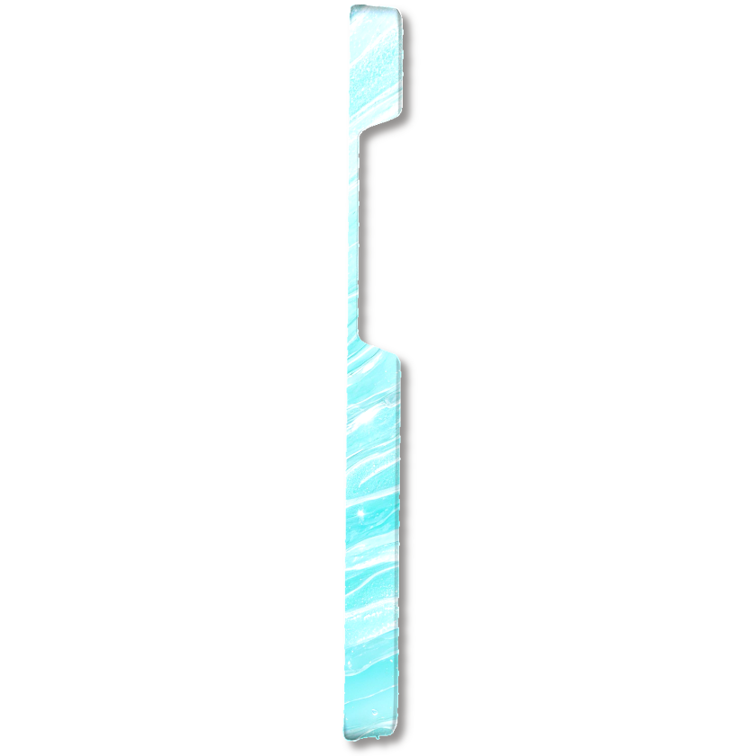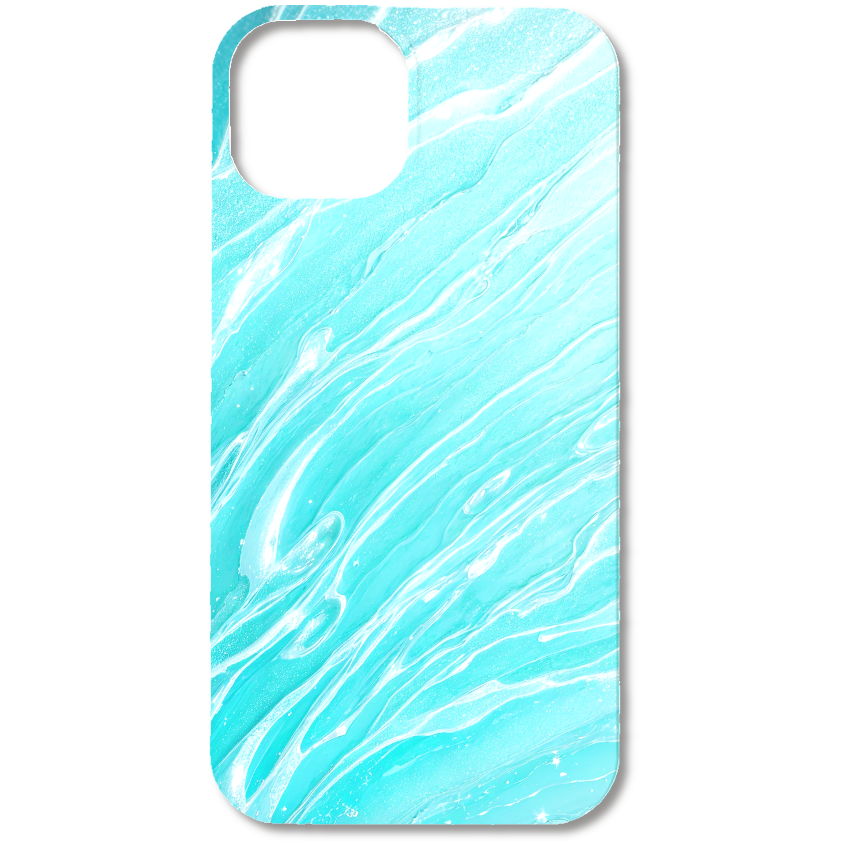 ターコイズブルーとホワイトのマーブル模様が、流れる水の動きを表現しています。