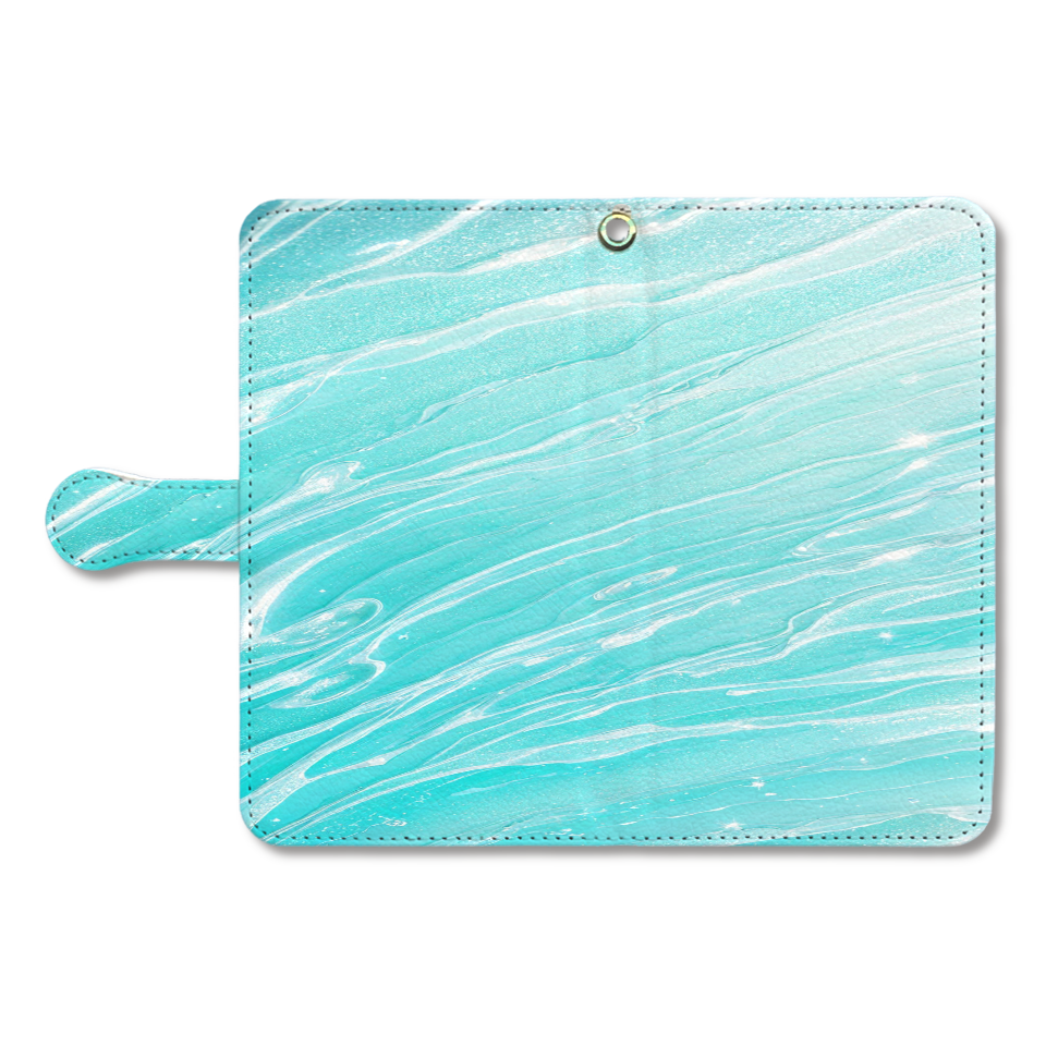 深く澄んだ海の水底から湧き上がるような、幻想的なデザインのスマホケースです。