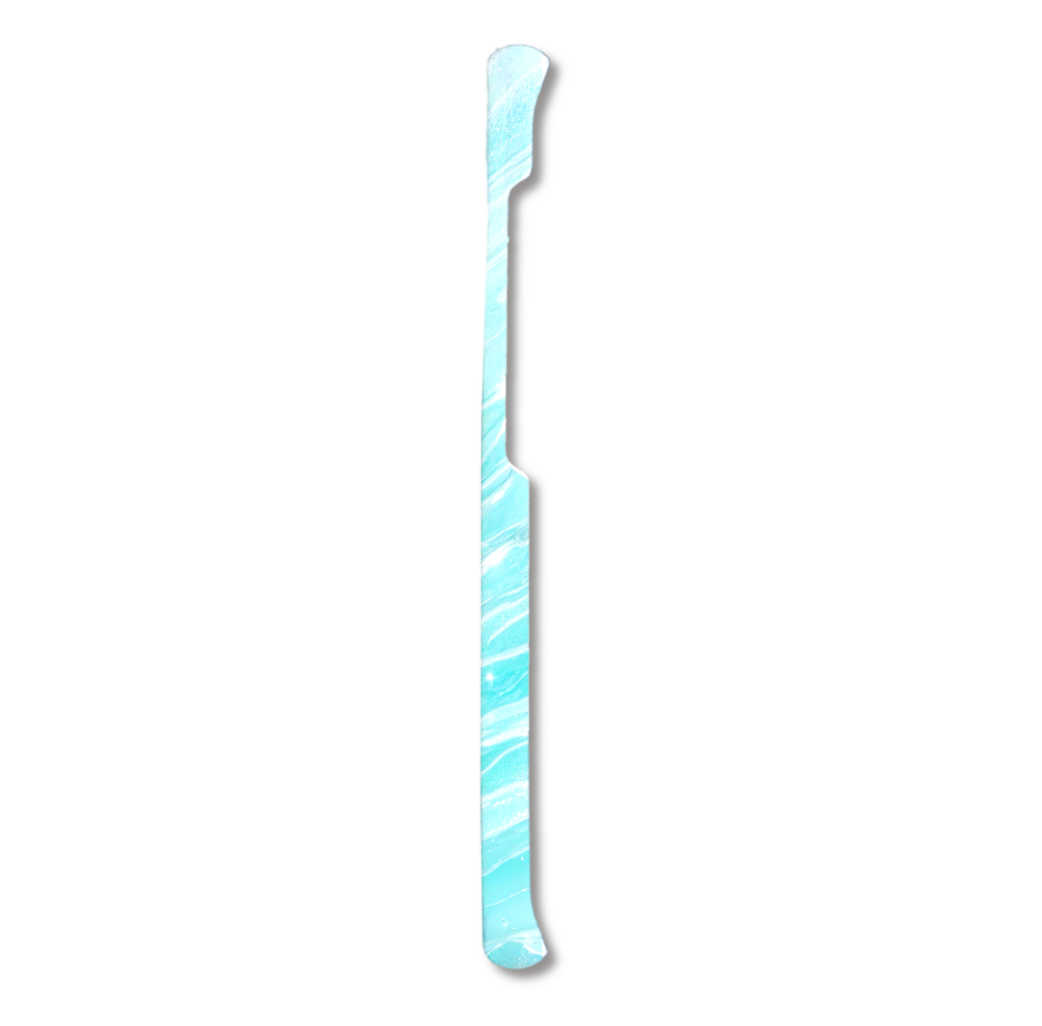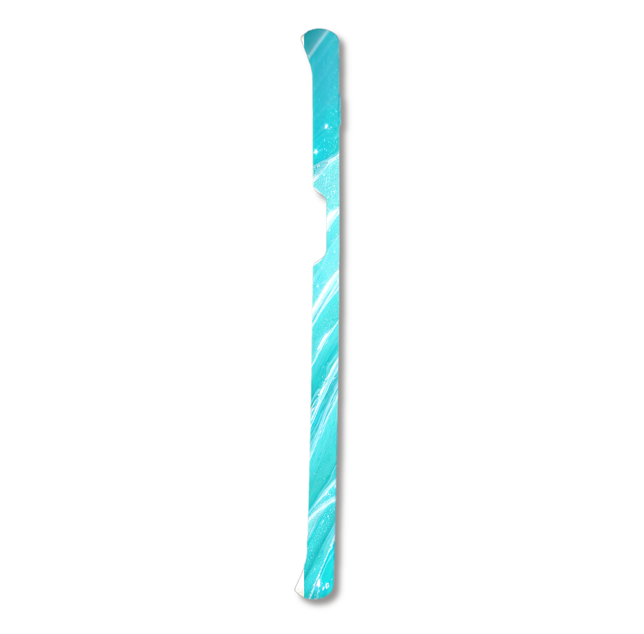 ターコイズブルーとホワイトのマーブル模様が、流れる水の動きを表現しています。