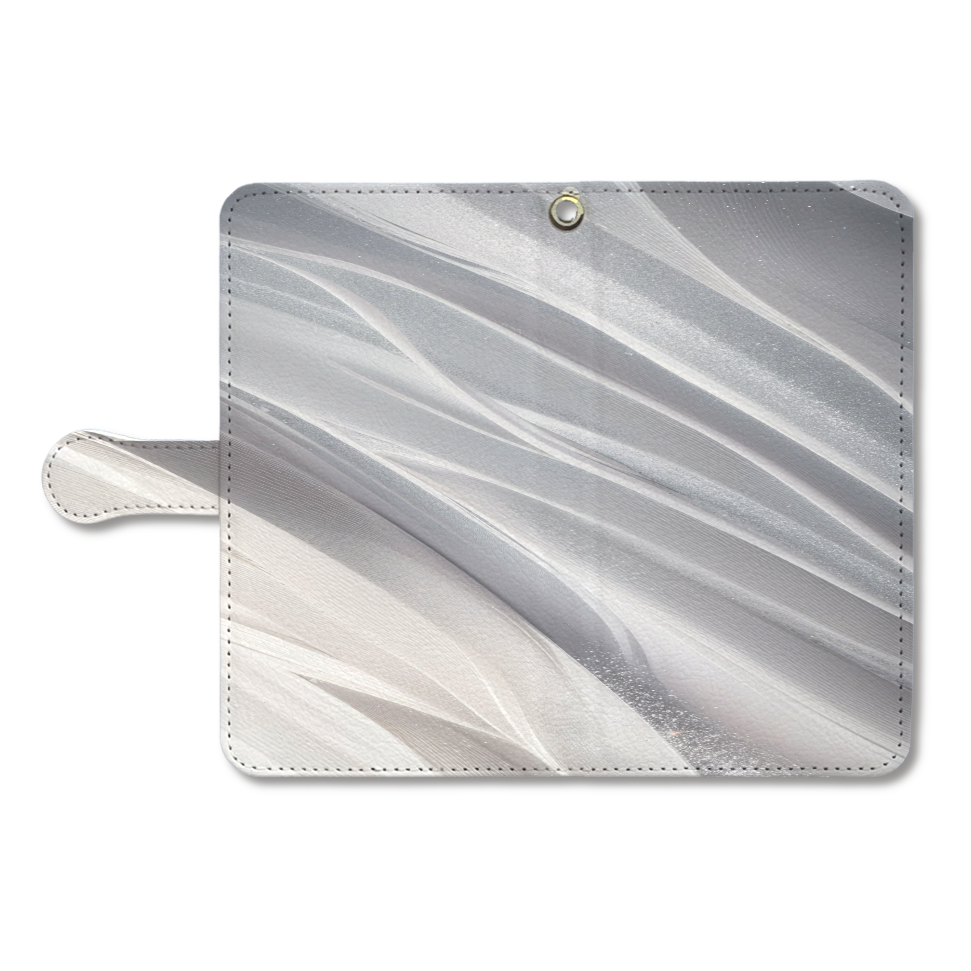 光の軌跡を描いたような、洗練されたデザインのスマホケースです。