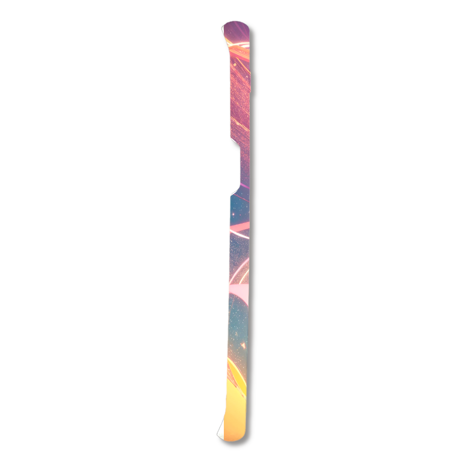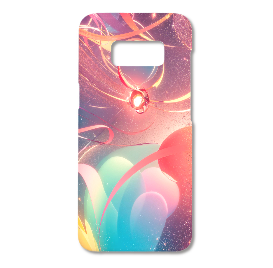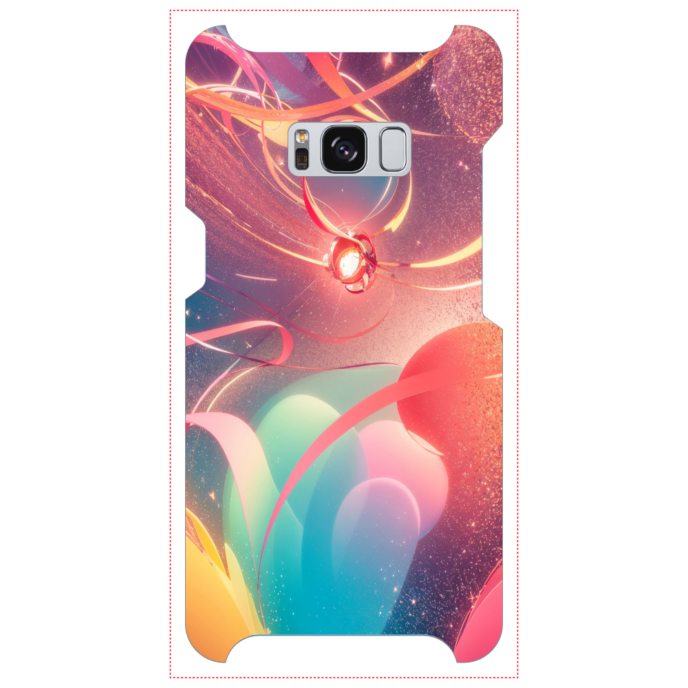 無重力空間に、光の帯が優雅に舞い、宝石のような球体が浮かぶ、SF映画のワンシーンのようなスマホケースです。