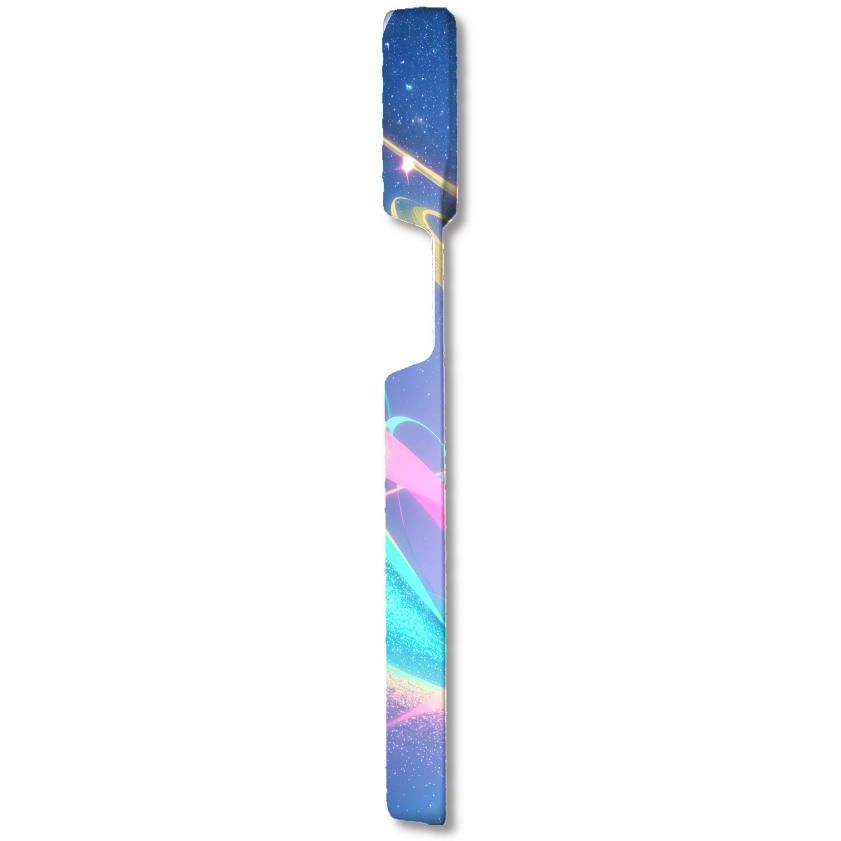 ピンク、ブルー、イエローの柔らかな色彩と、キラキラと輝く星屑が、ロマンチックな世界観を創り出しています。
