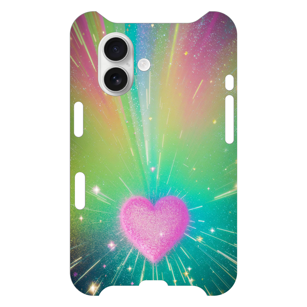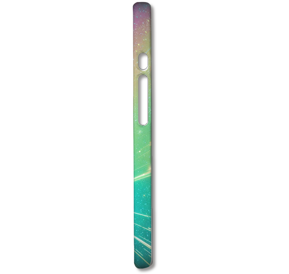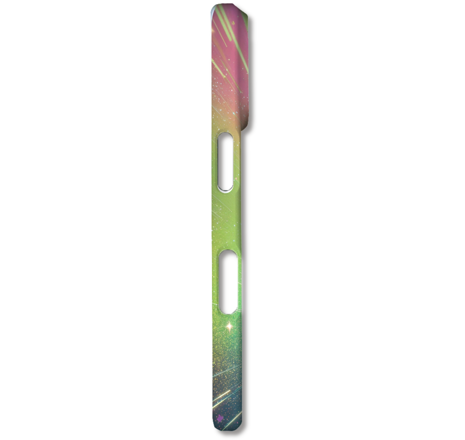 虹色にきらめくグリッターの道が、夢の世界へと誘うような幻想的なデザインのスマホケースです。