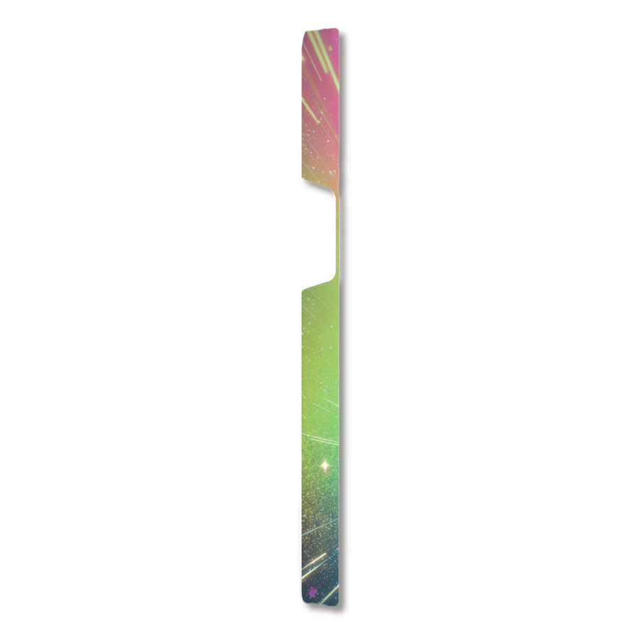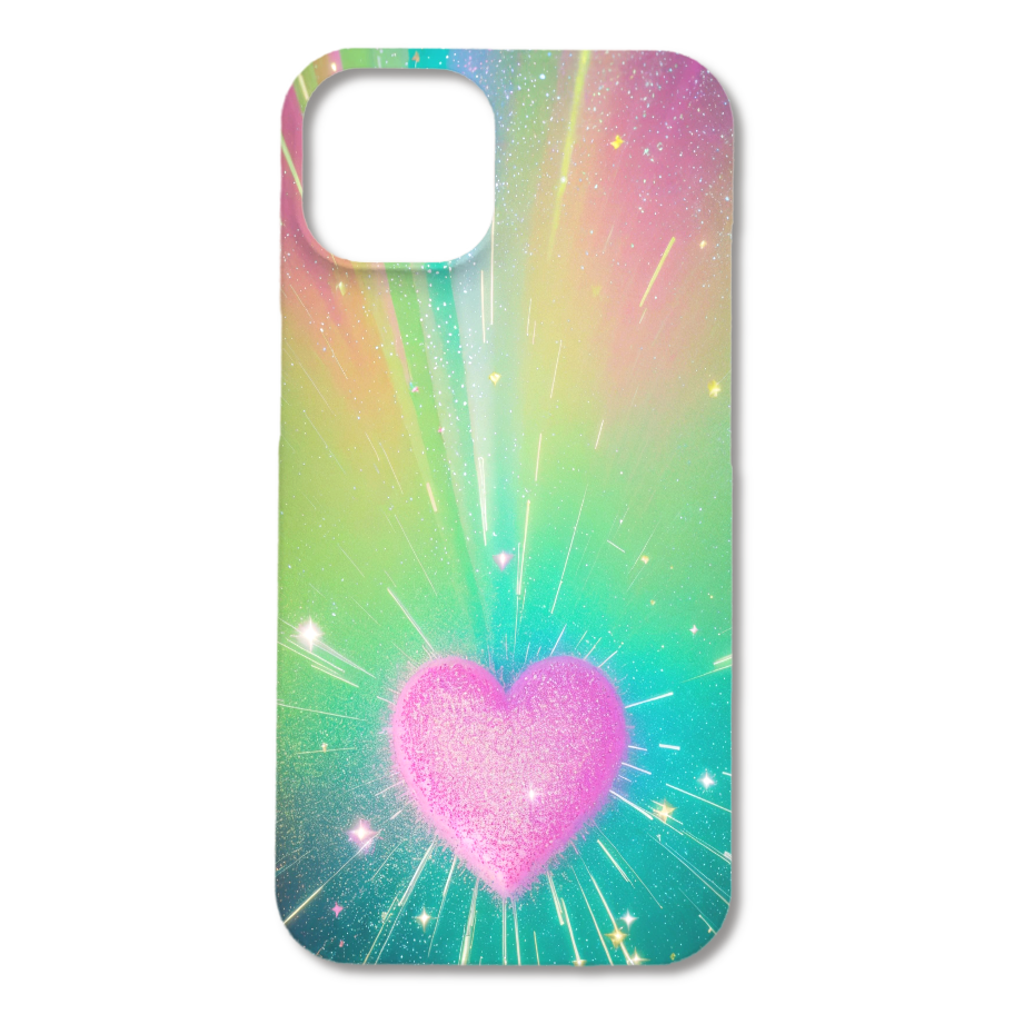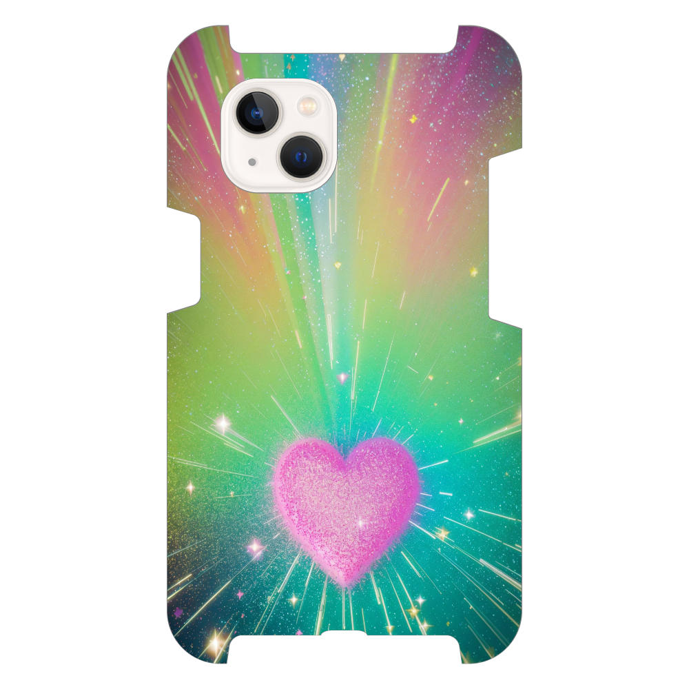 虹色にきらめくグリッターの道が、夢の世界へと誘うような幻想的なデザインのスマホケースです。