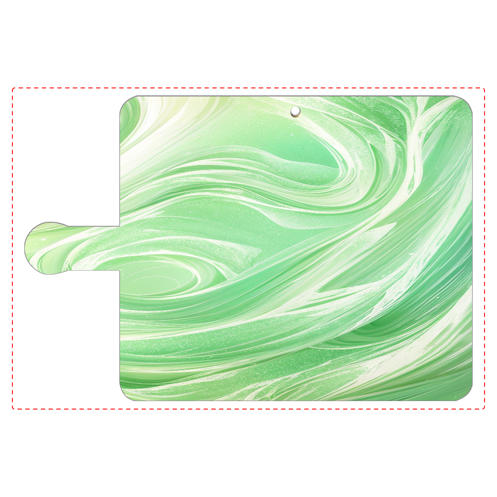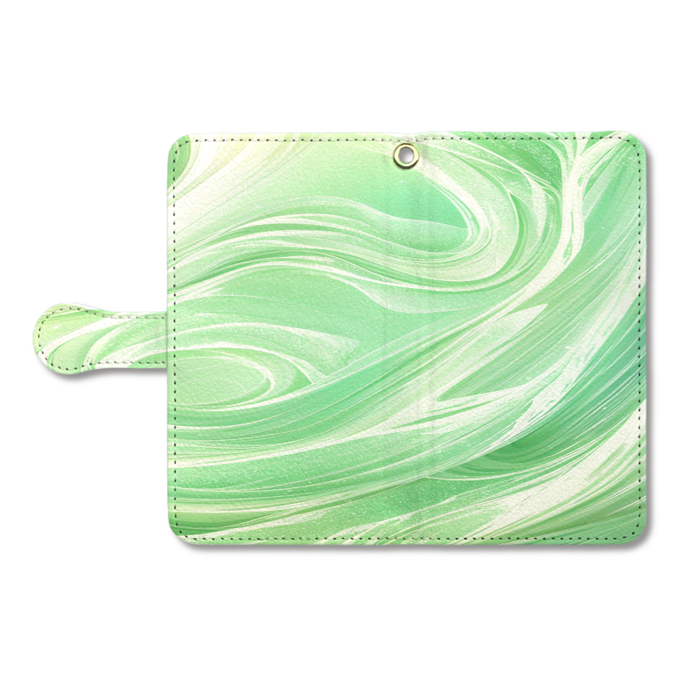 心を落ち着かせるヒーリンググリーンと、柔らかなホワイトが織りなす美しいマーブル模様のスマホケースです。