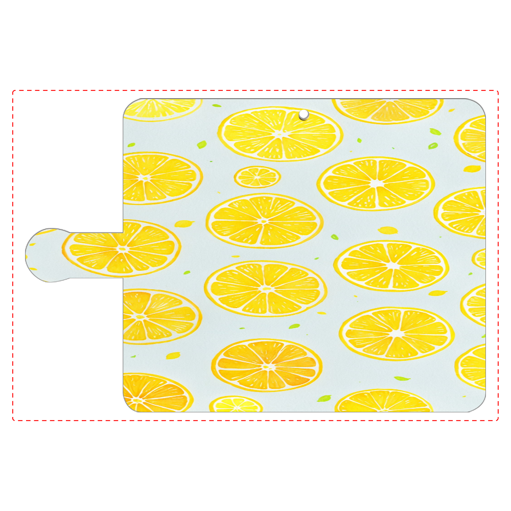 太陽の光をたっぷり浴びたレモンの輪切りが、軽やかに舞い降りるような、爽やかなスマホケースです。