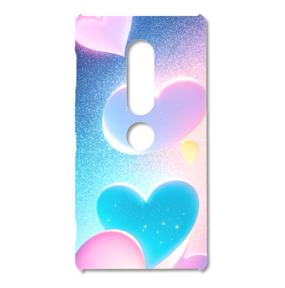 キラキラの背景に、ぷっくりしたハートが浮かんでる、夢みたいに可愛いデザインです。