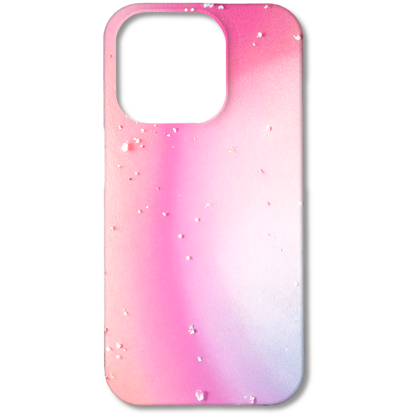 淡いピンクとパープルのグラデーションが美しい、幻想的なデザインのスマホケースです。