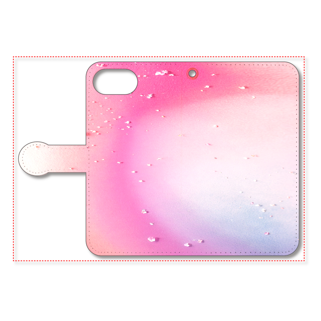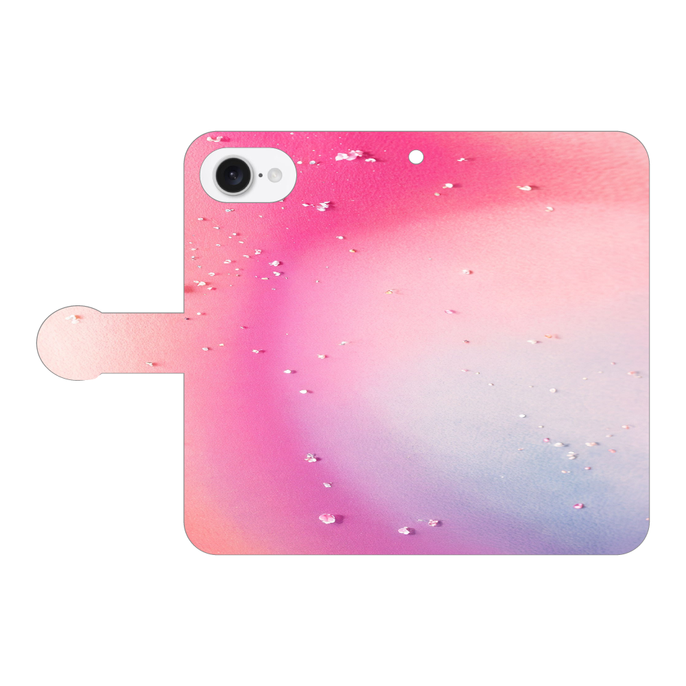 淡いピンクとパープルのグラデーションが美しい、幻想的なデザインのスマホケースです。