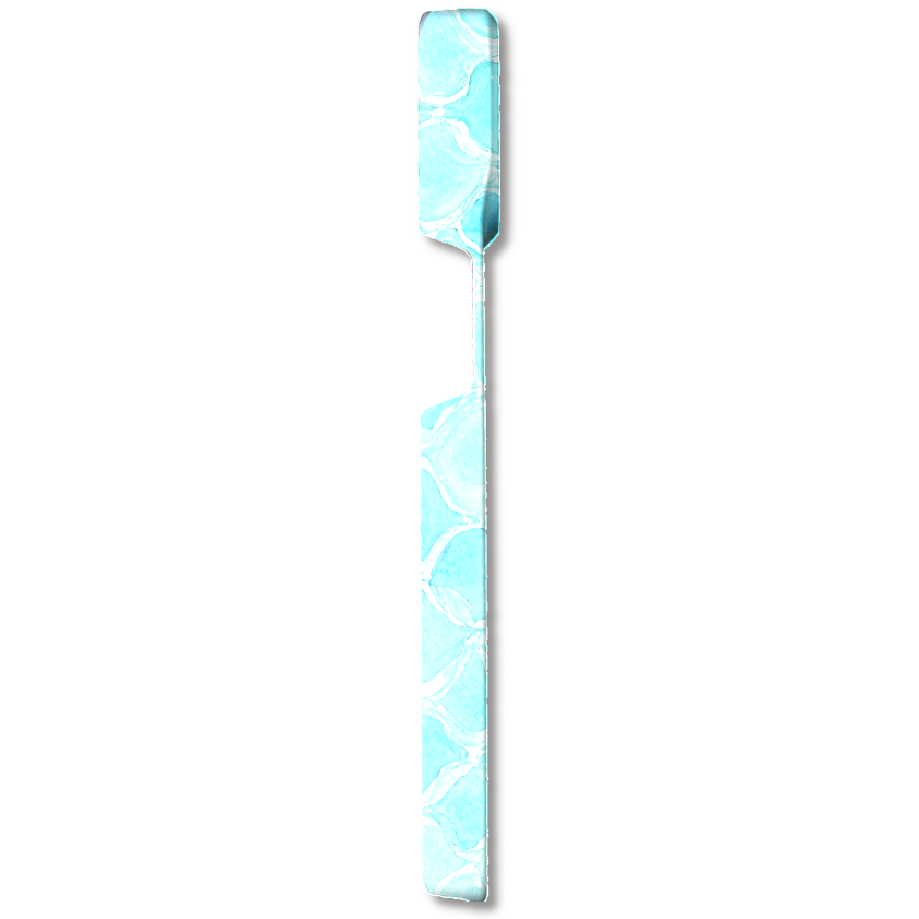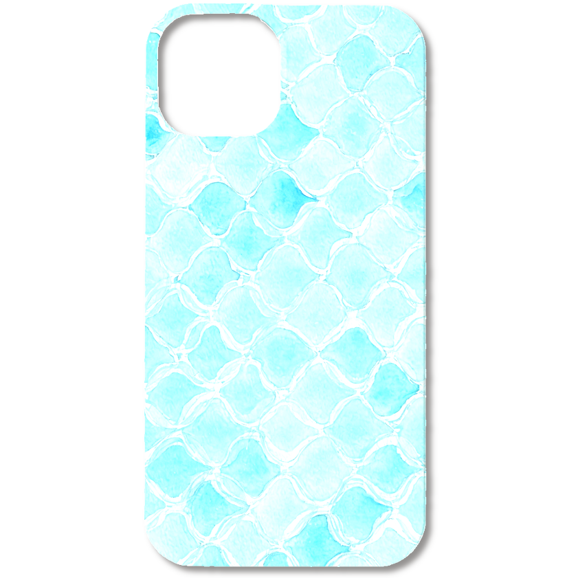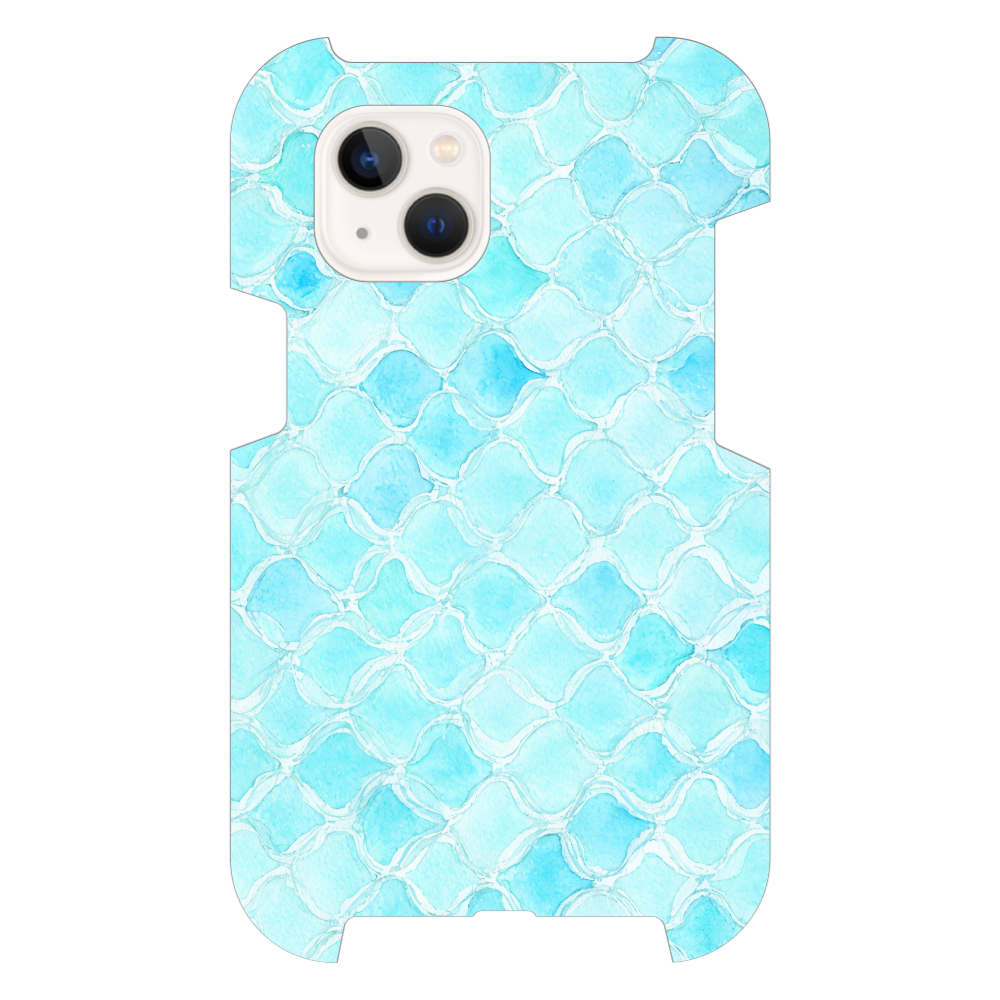 まるで人魚の鱗のような、爽やかな水色のタイル模様が美しいスマホケースです。