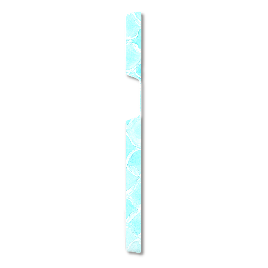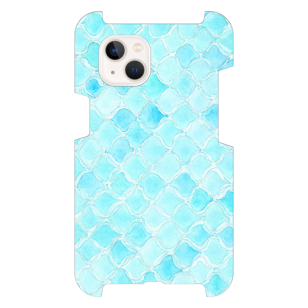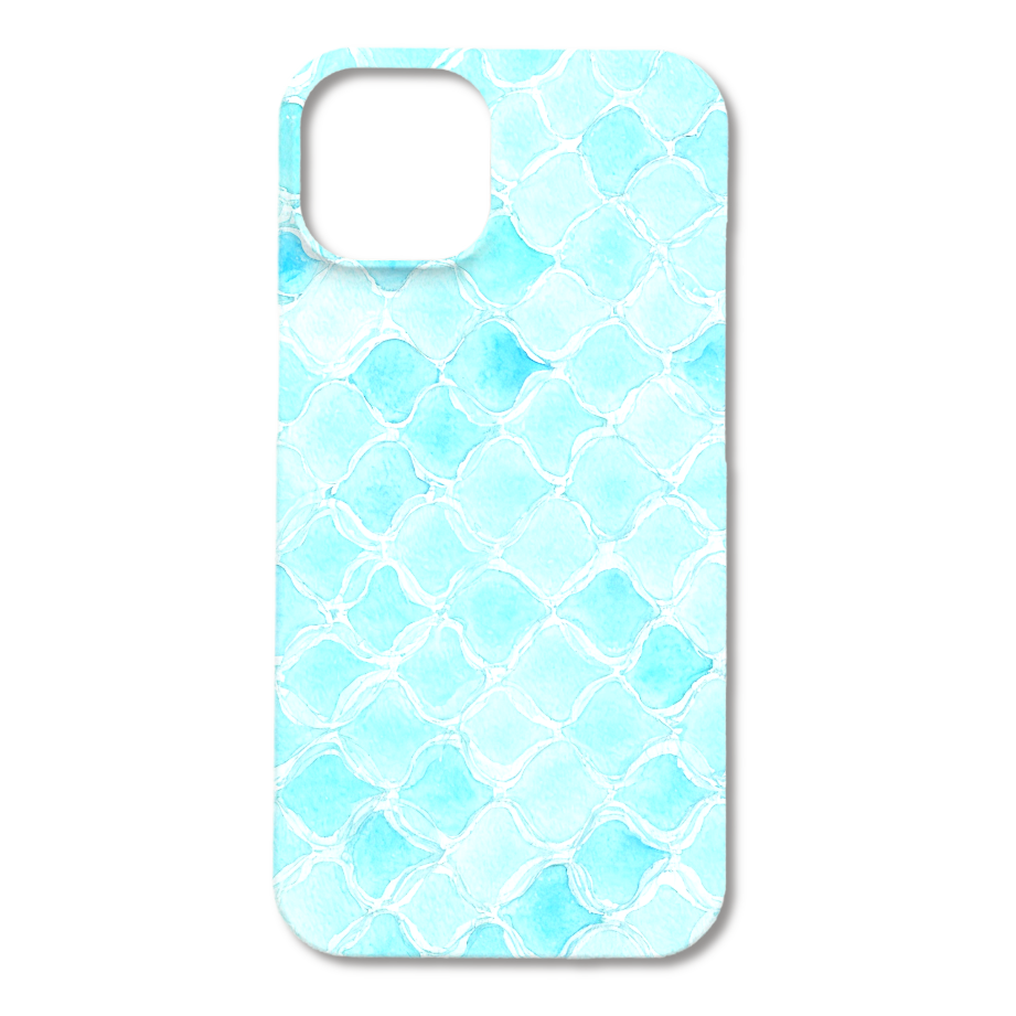 まるで人魚の鱗のような、爽やかな水色のタイル模様が美しいスマホケースです。