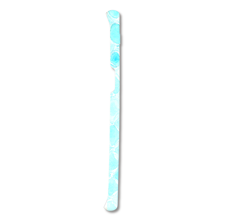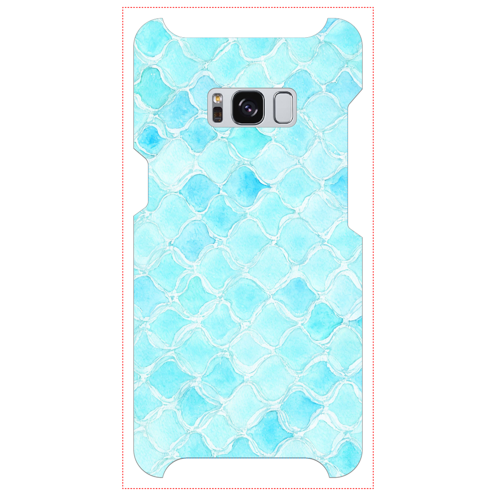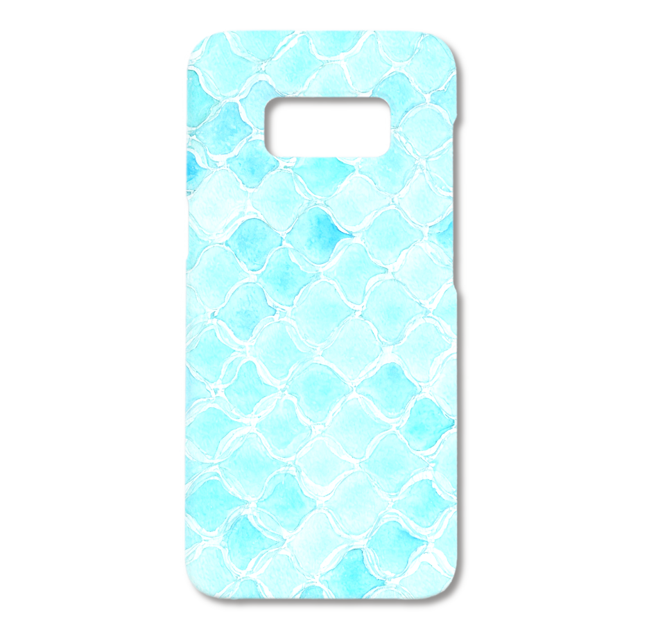 まるで人魚の鱗のような、爽やかな水色のタイル模様が美しいスマホケースです。