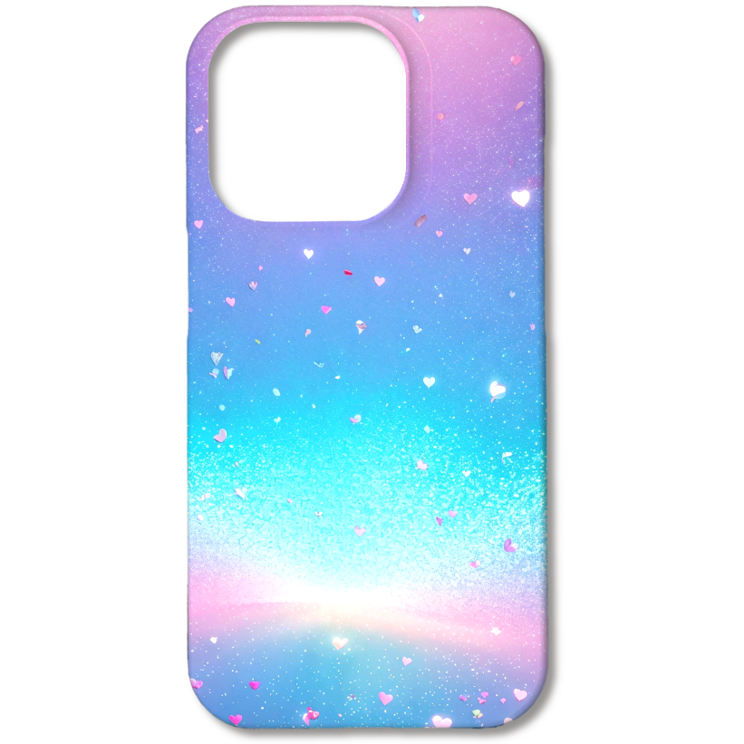 幻想的な宇宙に、愛らしいハートが舞い降りるスマホケースです。