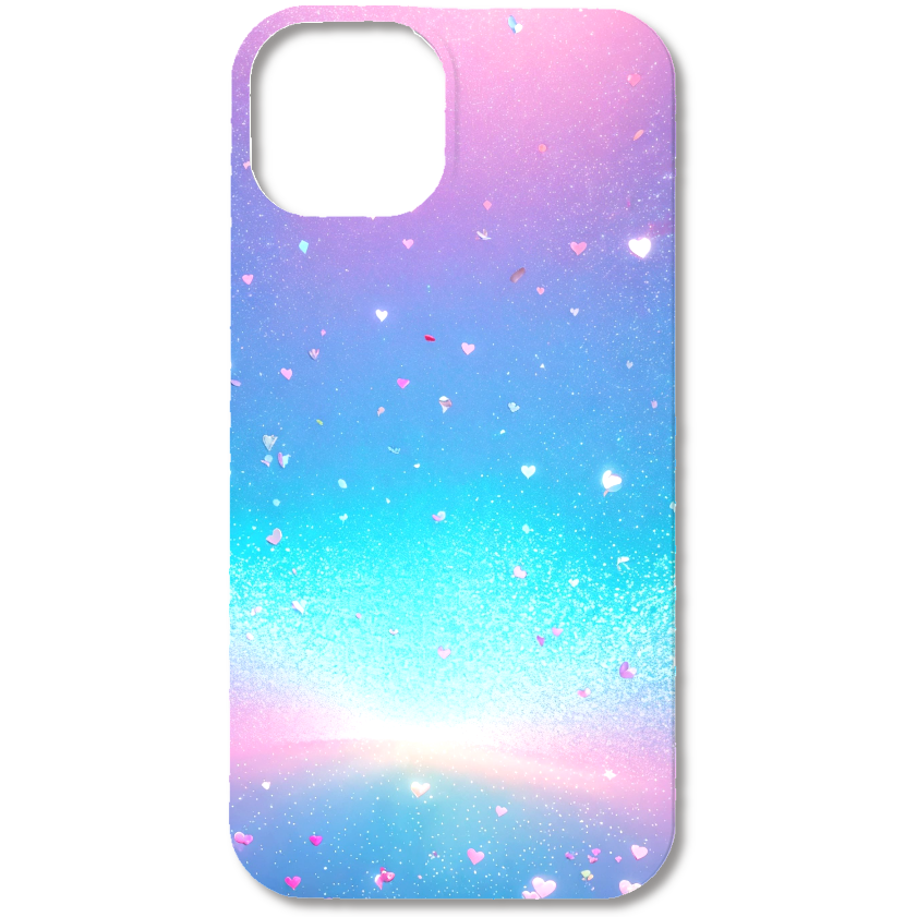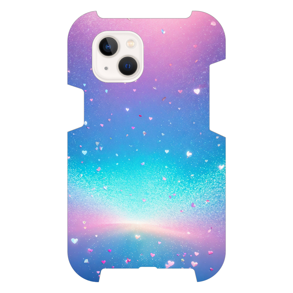 幻想的な宇宙に、愛らしいハートが舞い降りるスマホケースです。