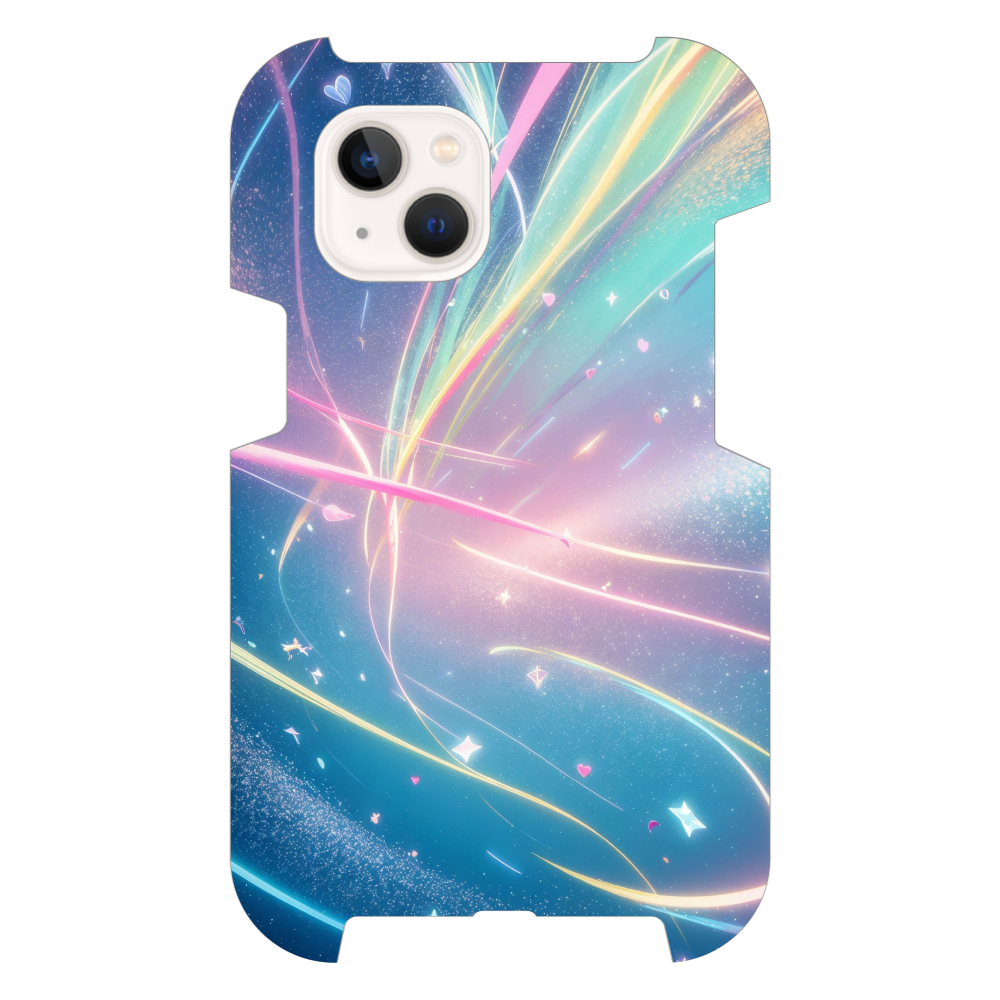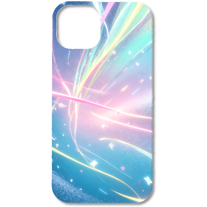 夜空に広がる、虹色に輝く流れ星を表現したスマホケースです。