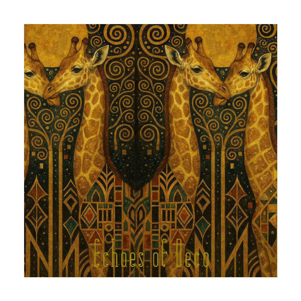 キリンたちの優雅な佇まいと、背景にちりばめられたアール・デコの模様。