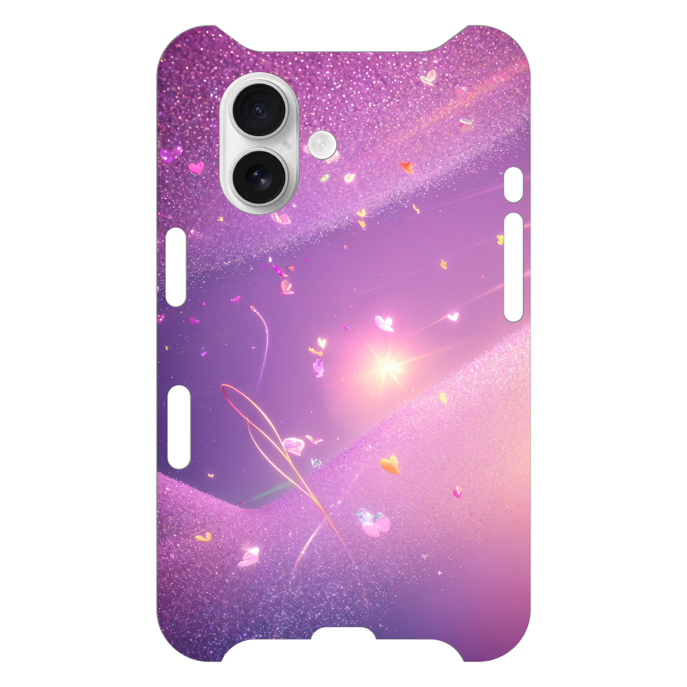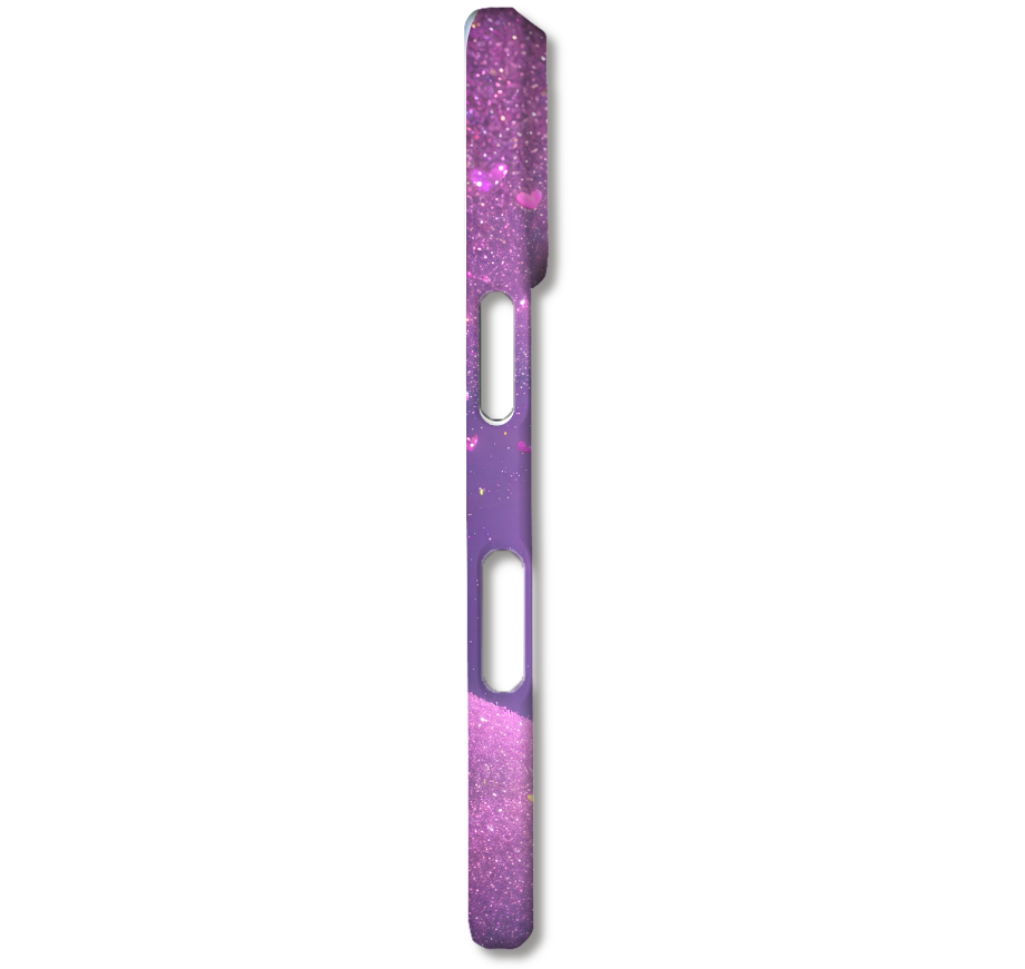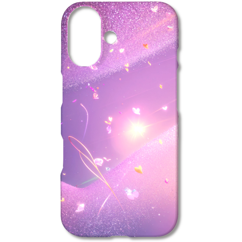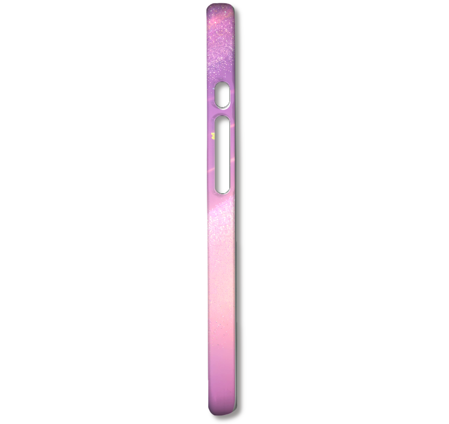パープルとピンクの幻想的なグラデーションに、キラキラと輝くグリッターが降り注ぐスマホケースです。