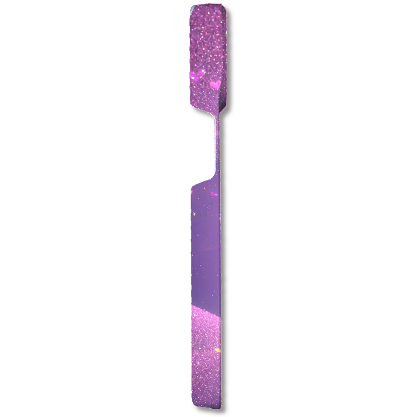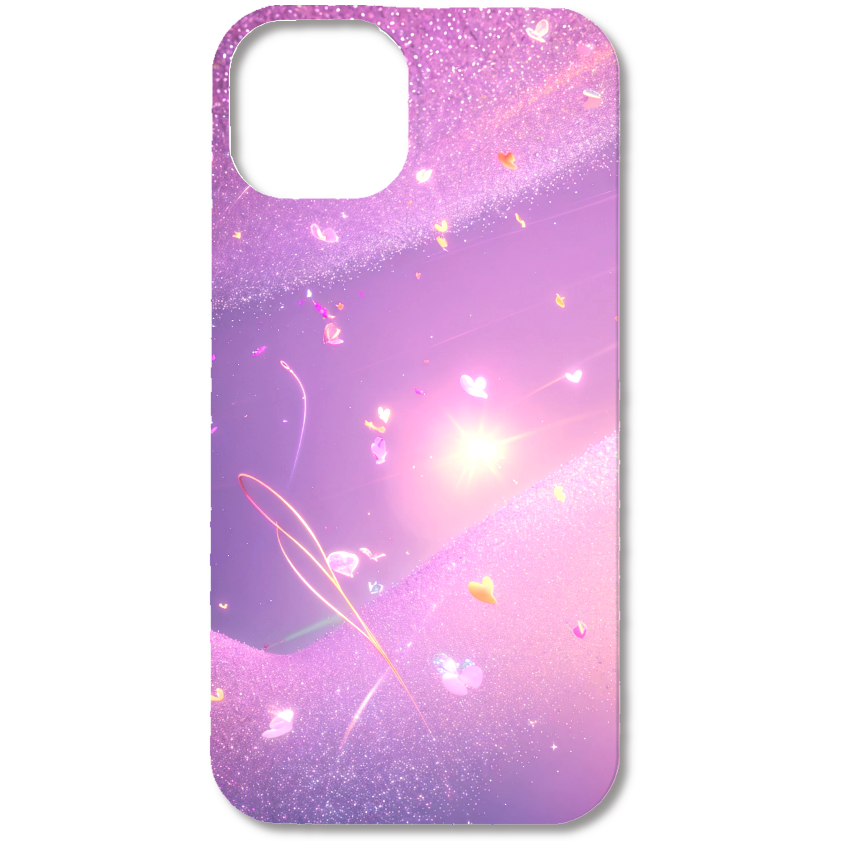 パープルとピンクの幻想的なグラデーションに、キラキラと輝くグリッターが降り注ぐスマホケースです。