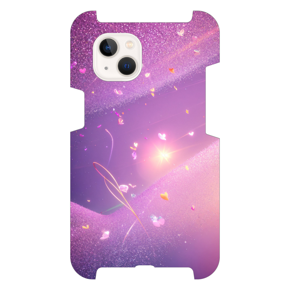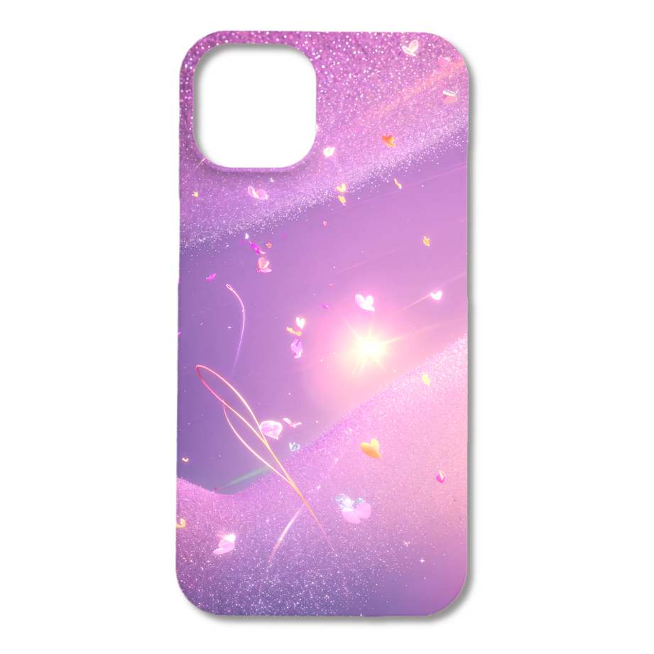 パープルとピンクの幻想的なグラデーションに、キラキラと輝くグリッターが降り注ぐスマホケースです。