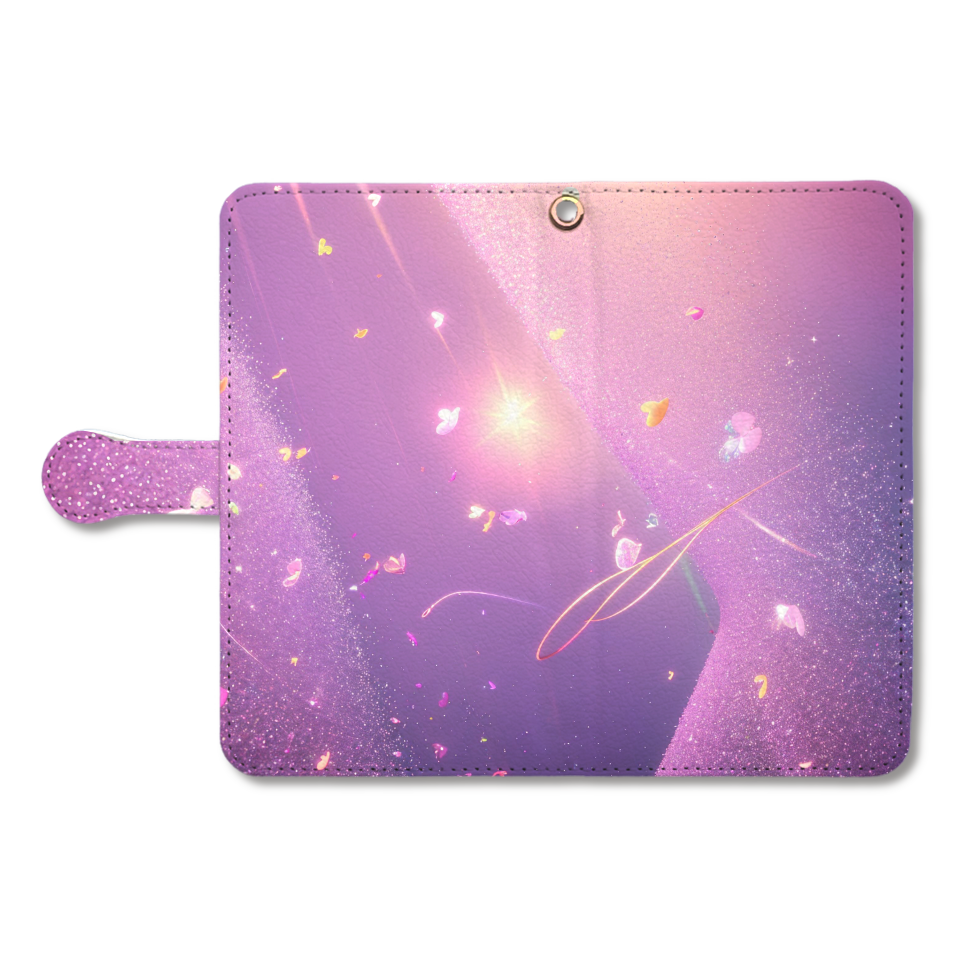 パープルとピンクの幻想的なグラデーションに、キラキラと輝くグリッターが降り注ぐスマホケースです。
