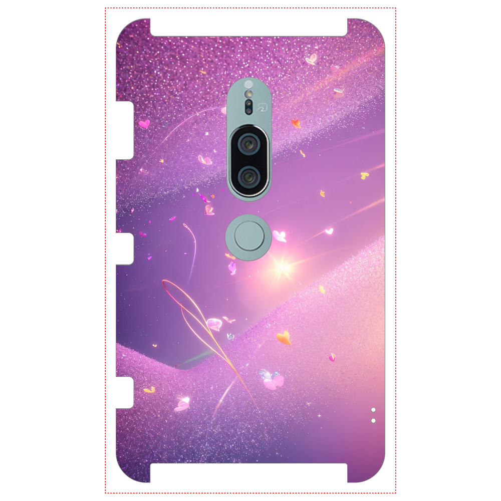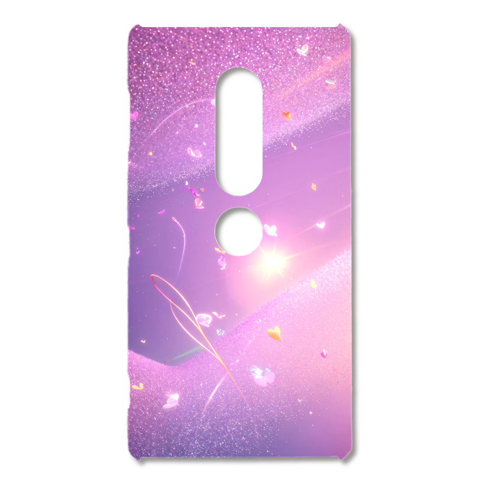 パープルとピンクの幻想的なグラデーションに、キラキラと輝くグリッターが降り注ぐスマホケースです。