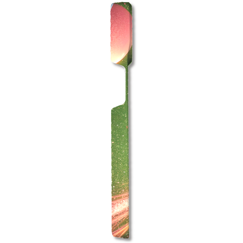 リボンの両側から放射状に広がる光の線が、ダイナミックで華やかな雰囲気を演出。