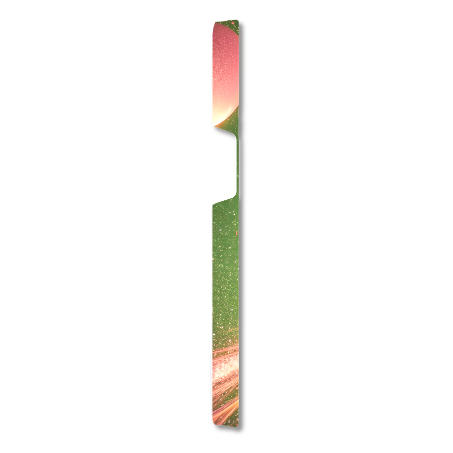 リボンの両側から放射状に広がる光の線が、ダイナミックで華やかな雰囲気を演出。