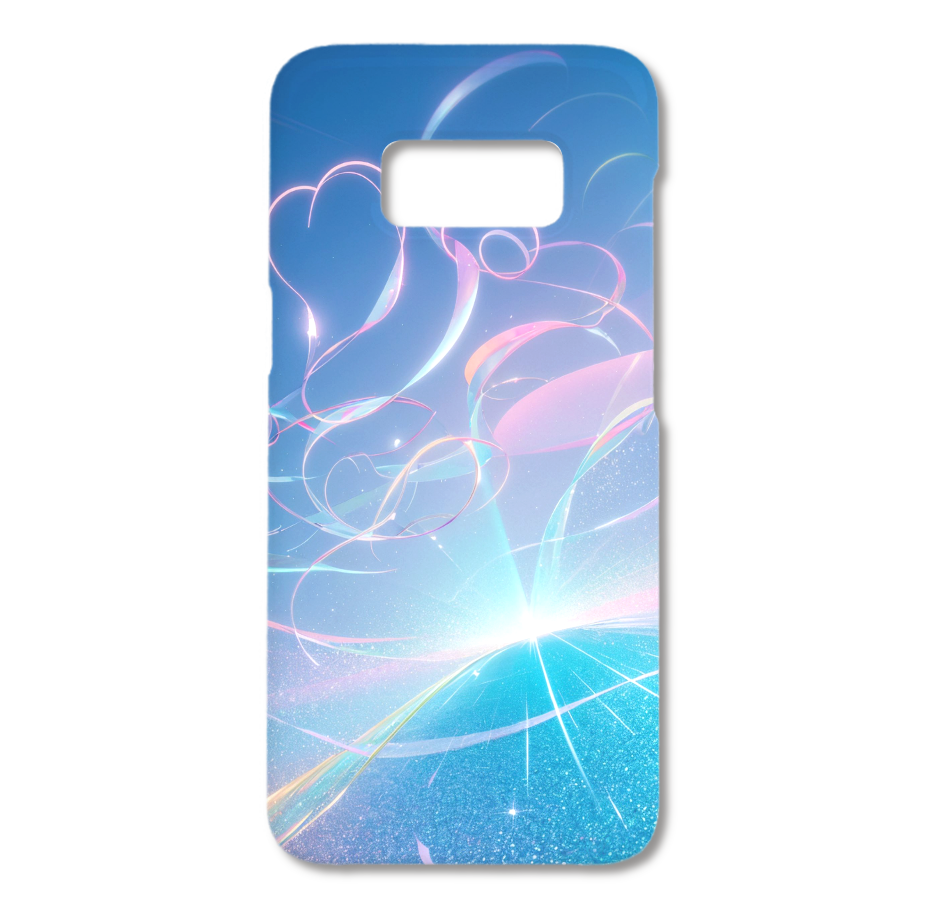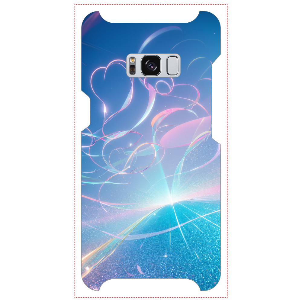 空に舞い上がる光のリボンと、きらめくグリッターが幻想的なスマホケースです。