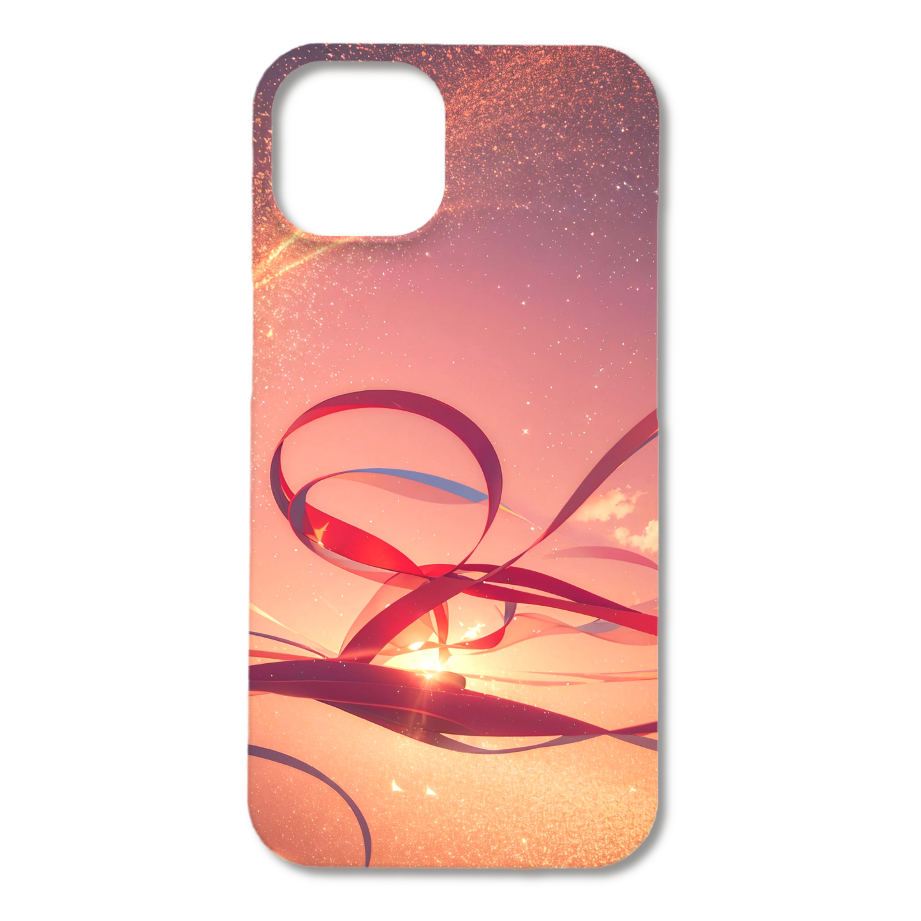 夜空に舞う、光り輝くリボンをモチーフにしたスマホケースです。