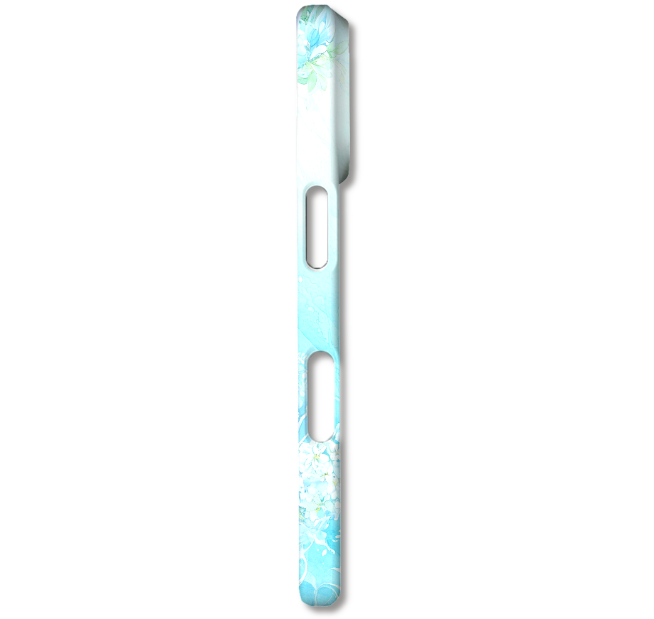 ケースの縁には、白い花々と葉っぱが繊細に描かれ、まるで水辺に咲く花々のよう。