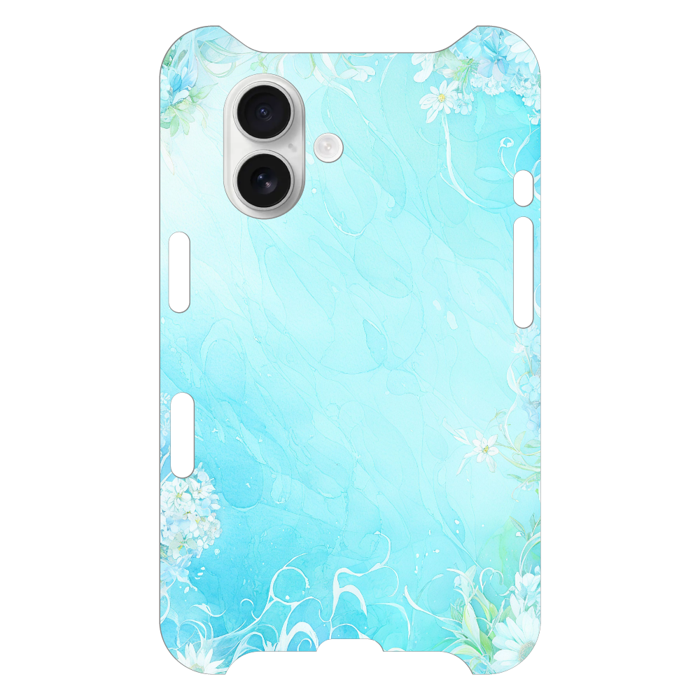 透明感あふれるミントブルーの水彩模様が、心を落ち着かせてくれるスマホケースです。