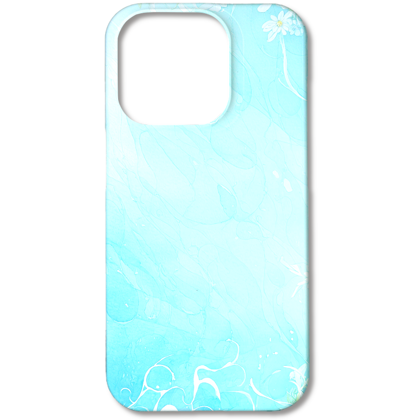 透明感あふれるミントブルーの水彩模様が、心を落ち着かせてくれるスマホケースです。