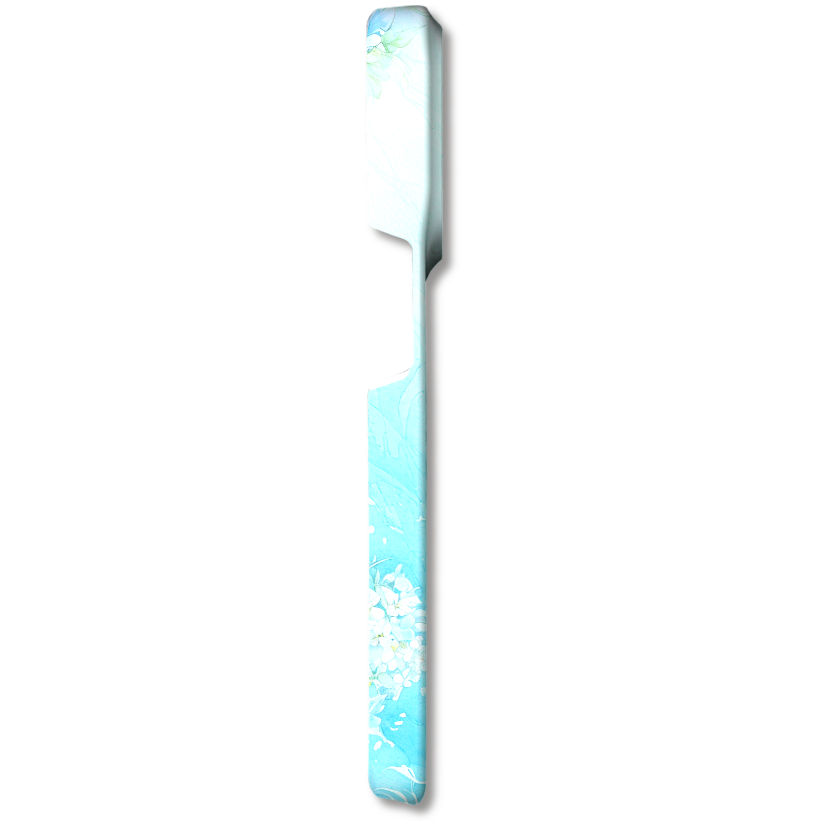 ケースの縁には、白い花々と葉っぱが繊細に描かれ、まるで水辺に咲く花々のよう。