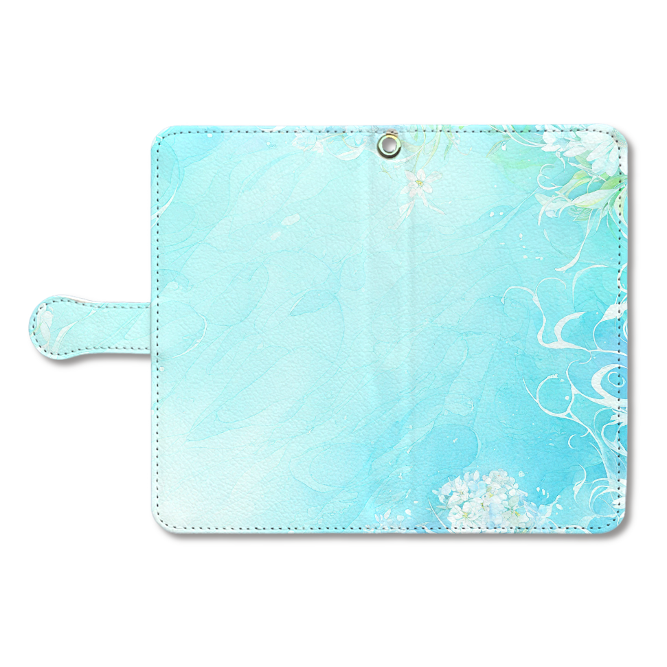 透明感あふれるミントブルーの水彩模様が、心を落ち着かせてくれるスマホケースです。