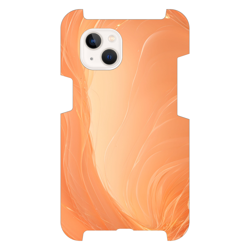 温かみのあるオレンジのグラデーションに、柔らかな光のウェーブが重なり合う、ラグジュアリーなスマホケースです。