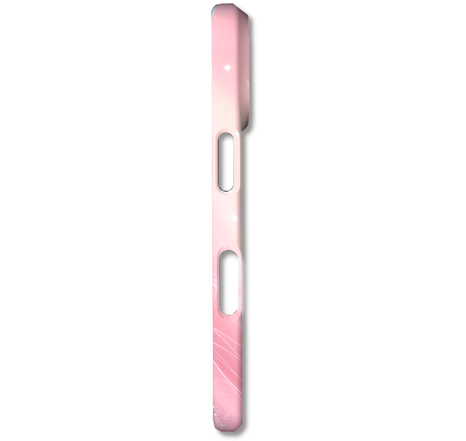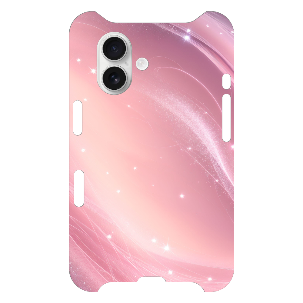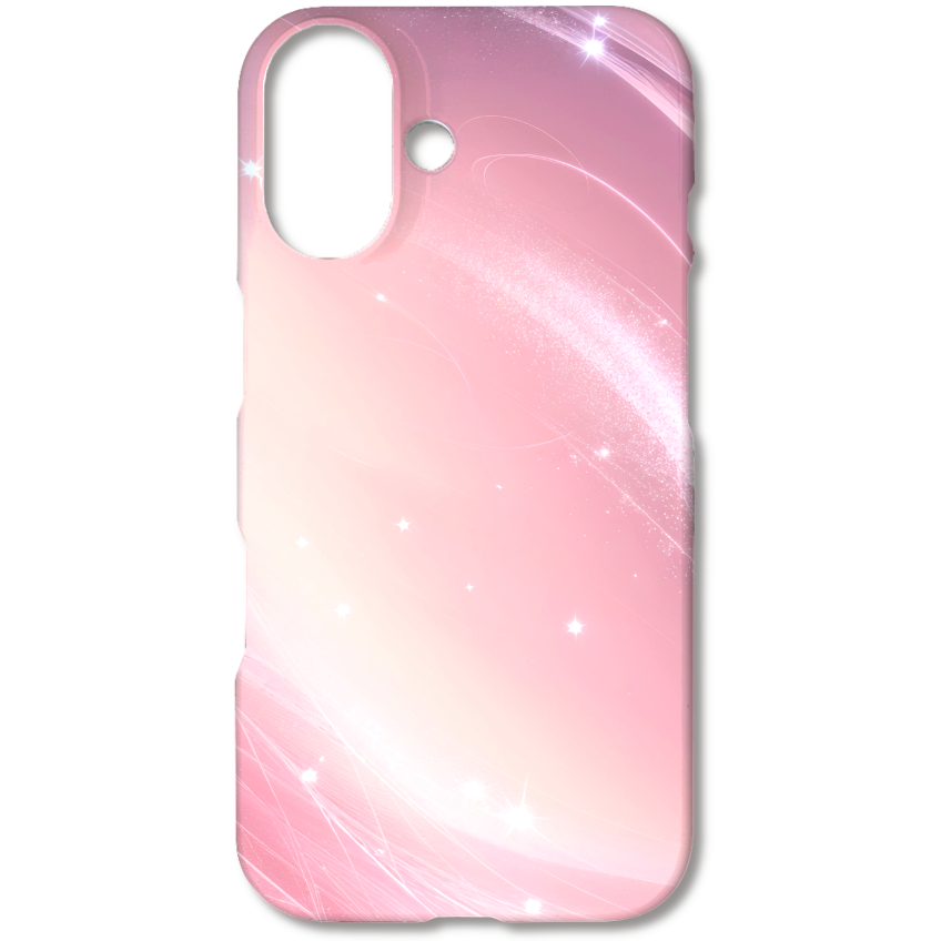 柔らかなパステルピンクのグラデーションに、キラキラと輝く星屑が舞う、幻想的なスマホケースです。