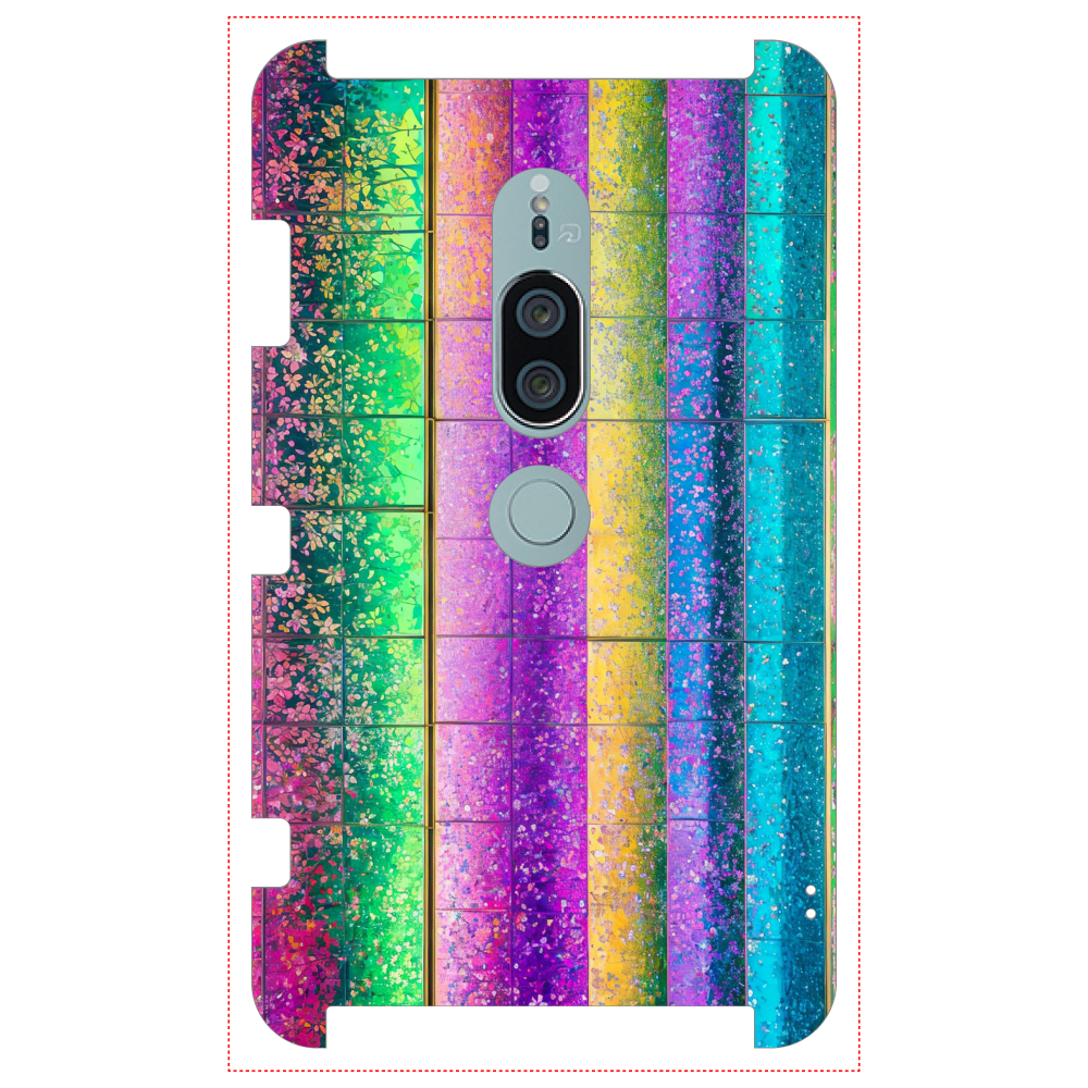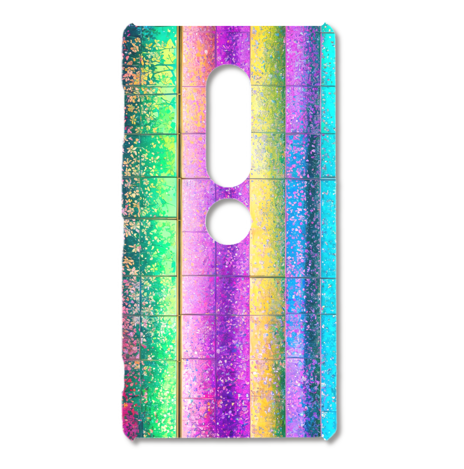 色とりどりのタイルに、繊細な花模様が舞い散るデザインのスマホケースです。