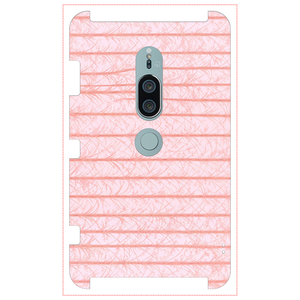 淡いピンクの背景に、繊細な和柄の文様が描かれたスマホケースです。
