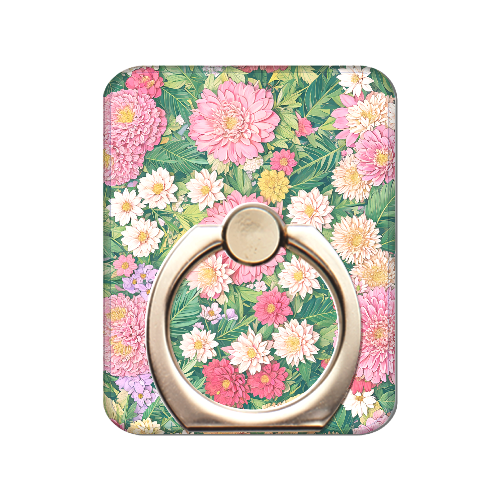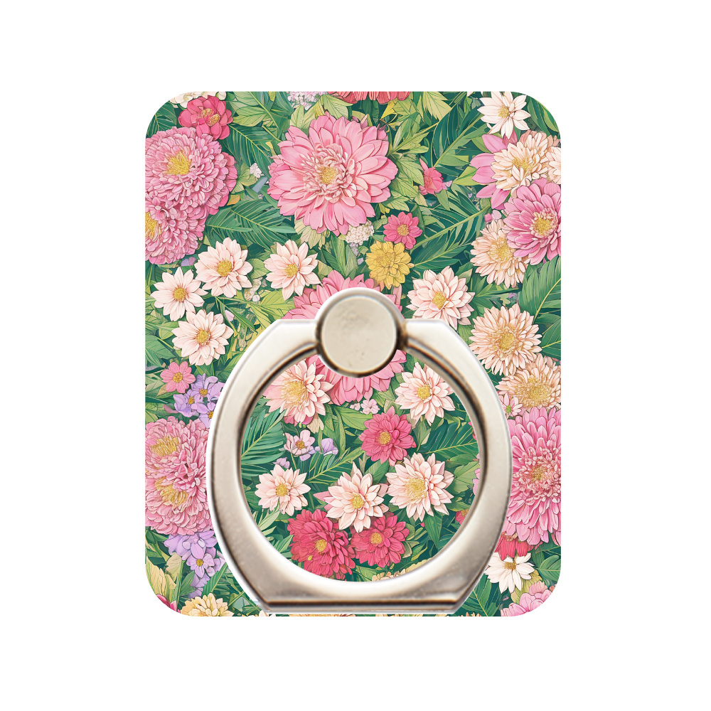 ピンク、イエロー、ホワイトの華やかな花々が、画面いっぱいに咲き誇るスマホケースです。