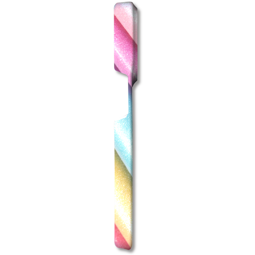 ふんわりとしたパステルカラーのグラデーションに、繊細なグリッターの輝きをプラスしたデザインです。ピンク、ゴールド、ミントグリーン、ラベンダーなど、甘くやさしい色合いが重なり合い、まるで虹色のリボンのよう。