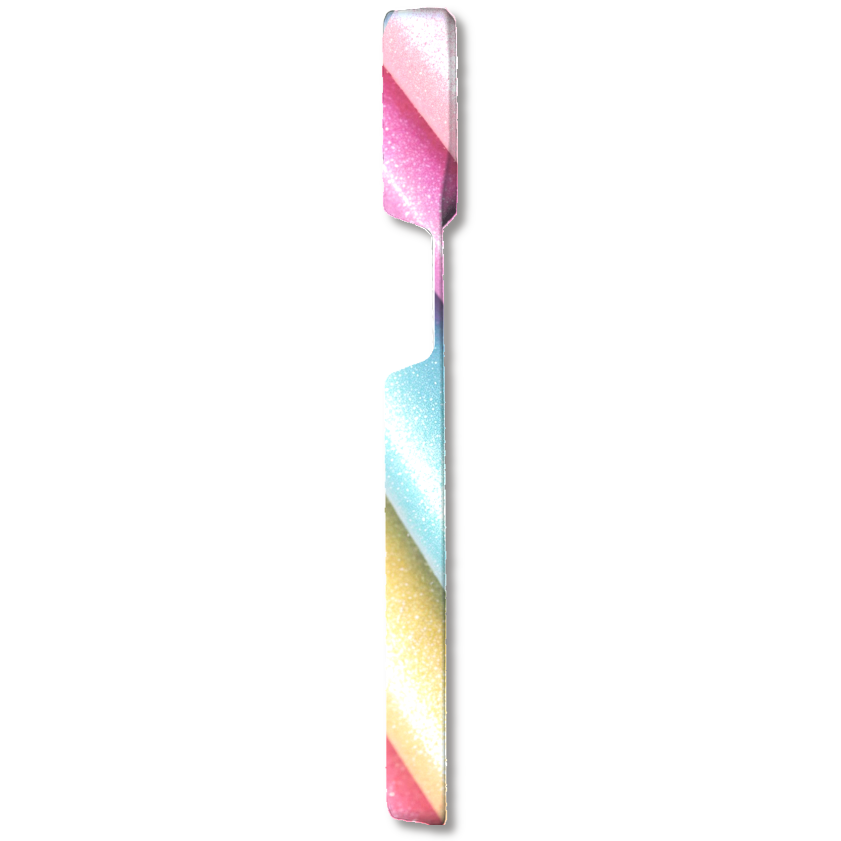 ふんわりとしたパステルカラーのグラデーションに、繊細なグリッターの輝きをプラスしたデザインです。ピンク、ゴールド、ミントグリーン、ラベンダーなど、甘くやさしい色合いが重なり合い、まるで虹色のリボンのよう。