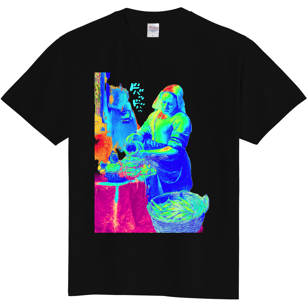 フェルメール×漫画のオノマトペという異色のコラボが生み出す、一周回って“尊い”Tシャツです。
