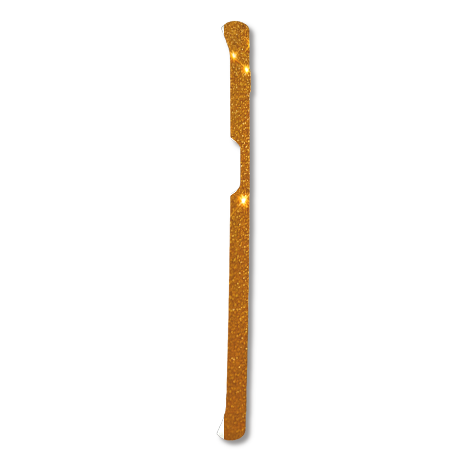 光を浴びて輝く黄金の砂浜をイメージしたデザインです。角度によって表情を変える繊細なテクスチャと、星のようにきらめく光の粒が、上品でゴージャスな雰囲気を演出します。