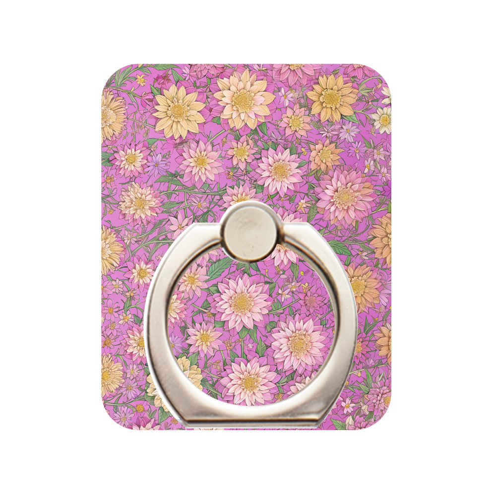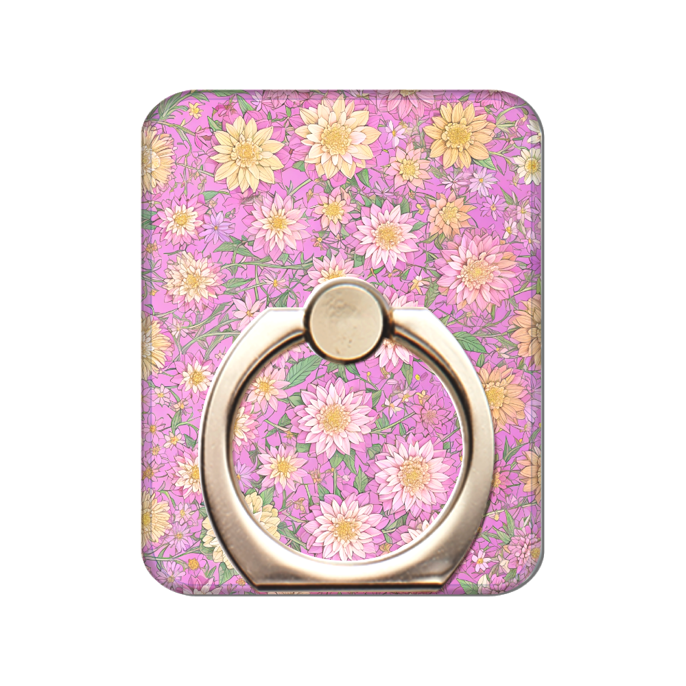 淡いピンクとパープルの背景に、繊細なタッチで描かれた花々が咲き誇る、ロマンチックなデザインです。ダリアや菊のような可憐な花が画面いっぱいに広がり、優しい色合いが気分を明るくしてくれます。